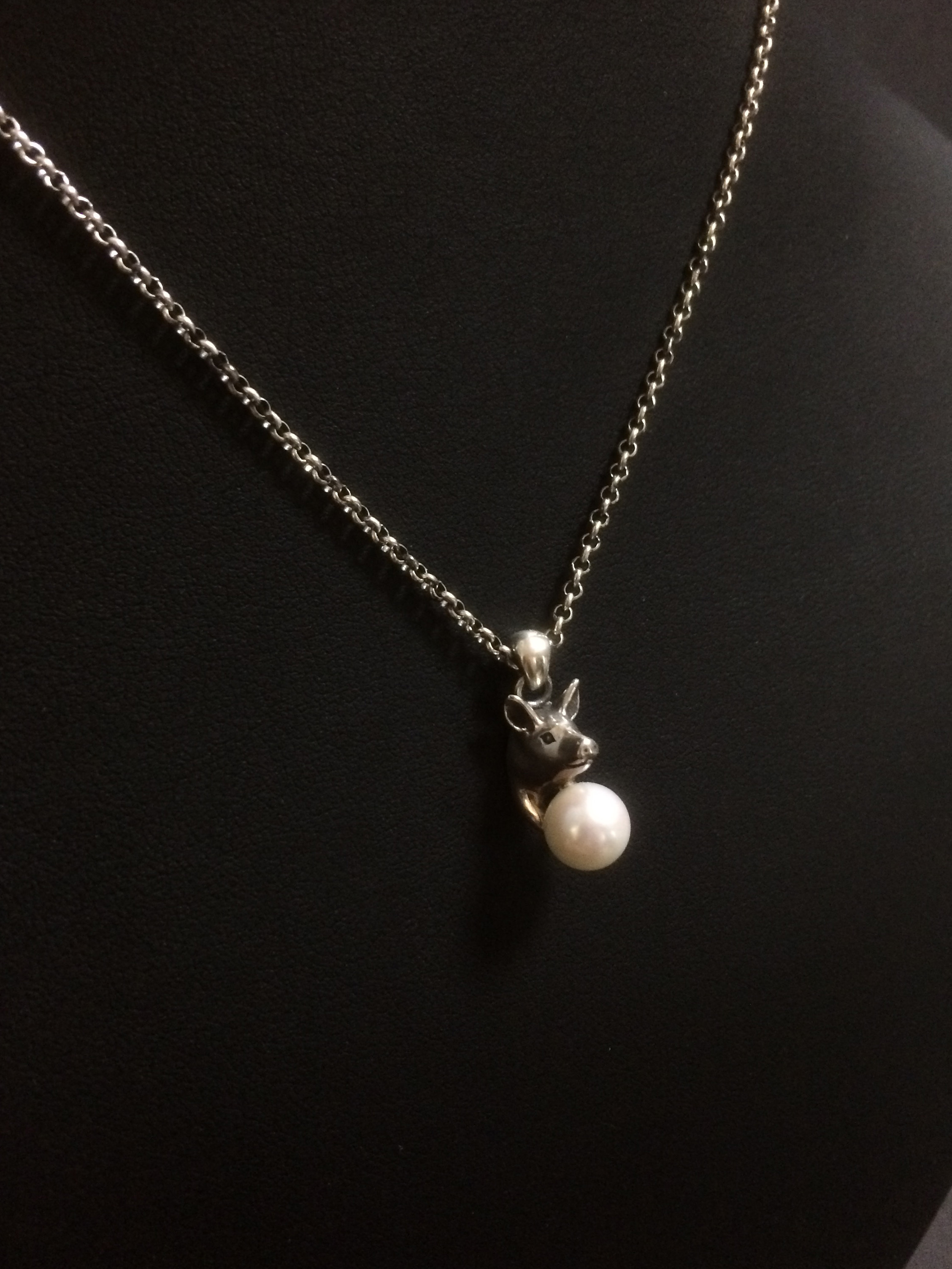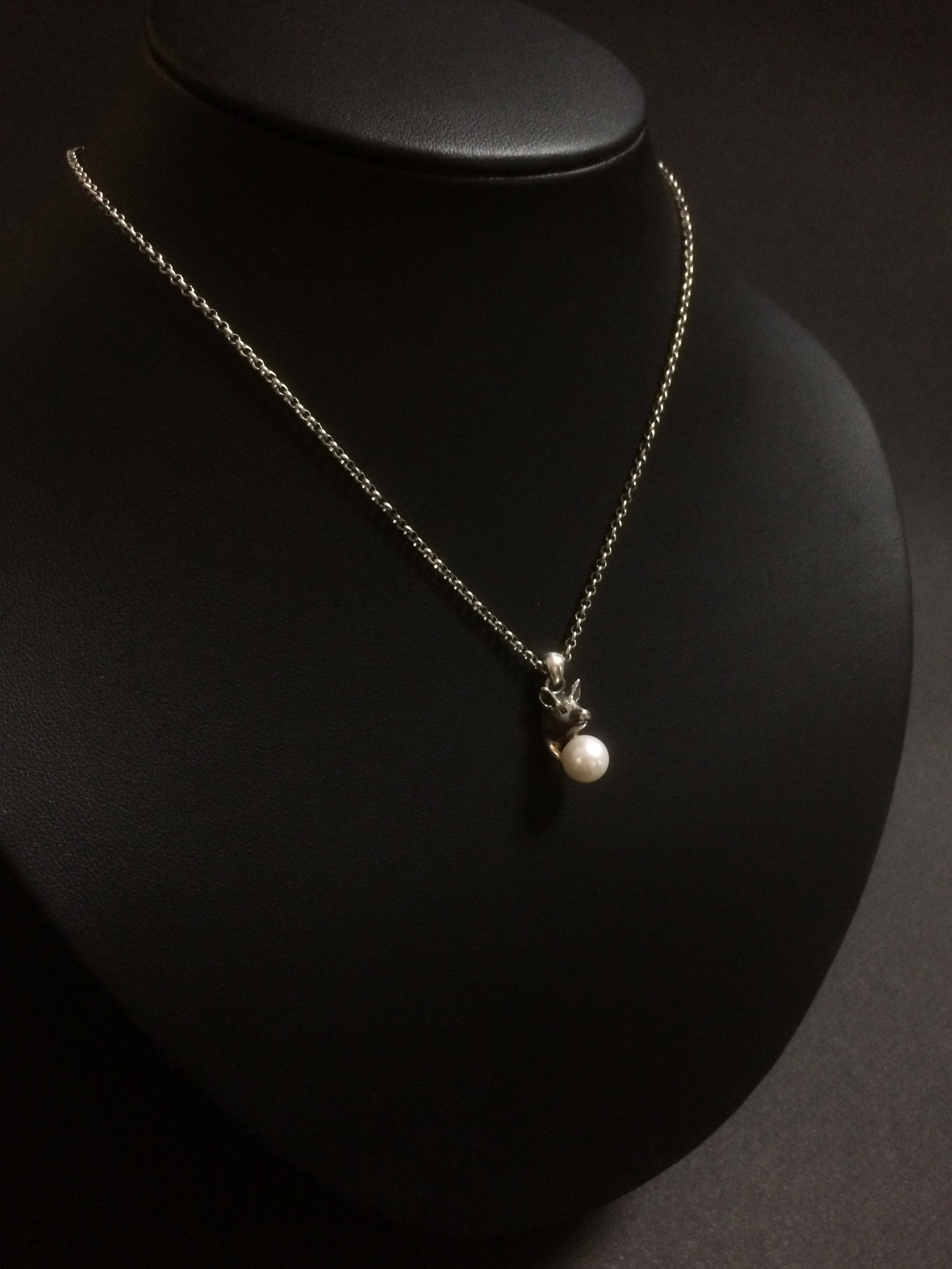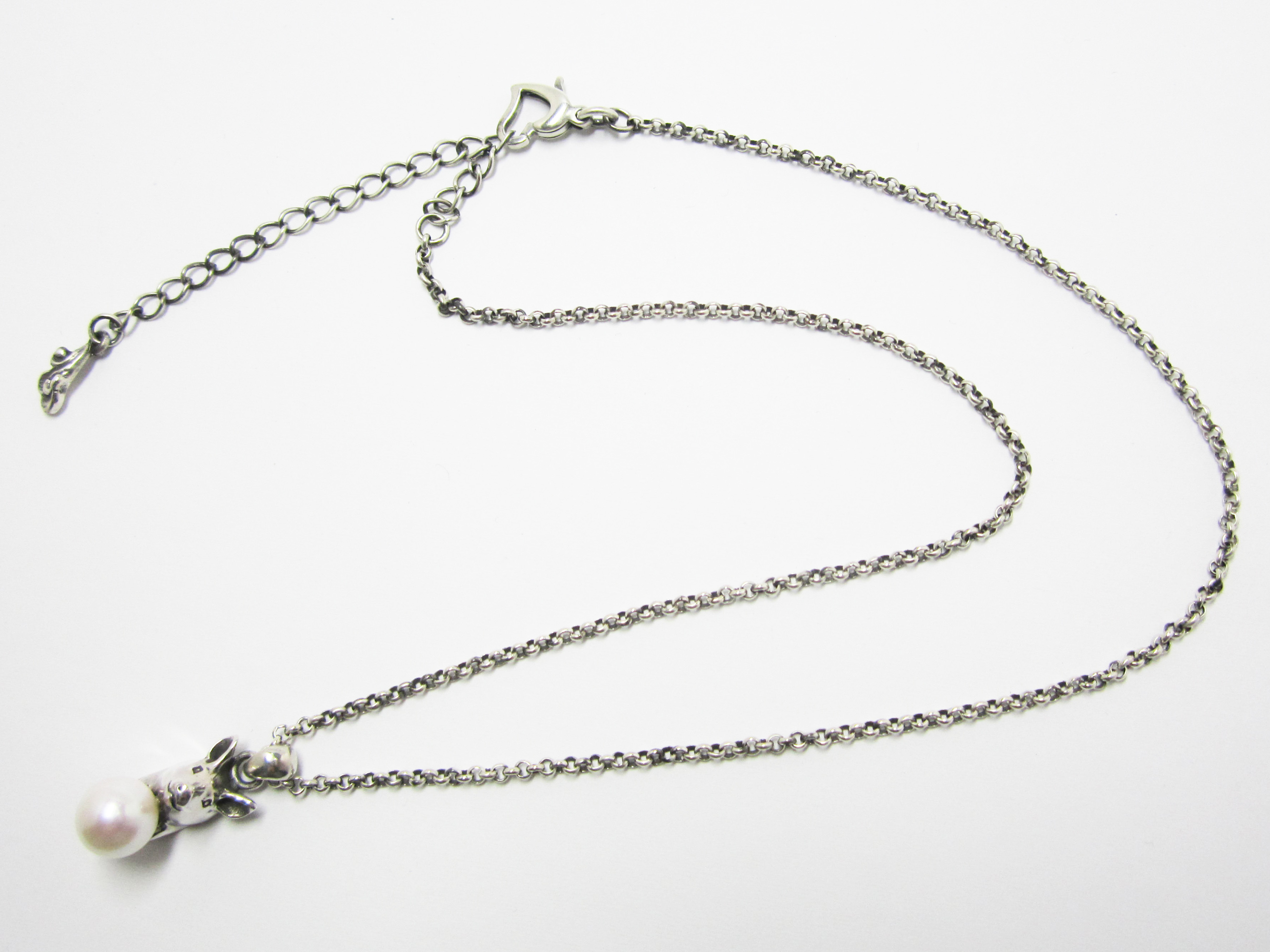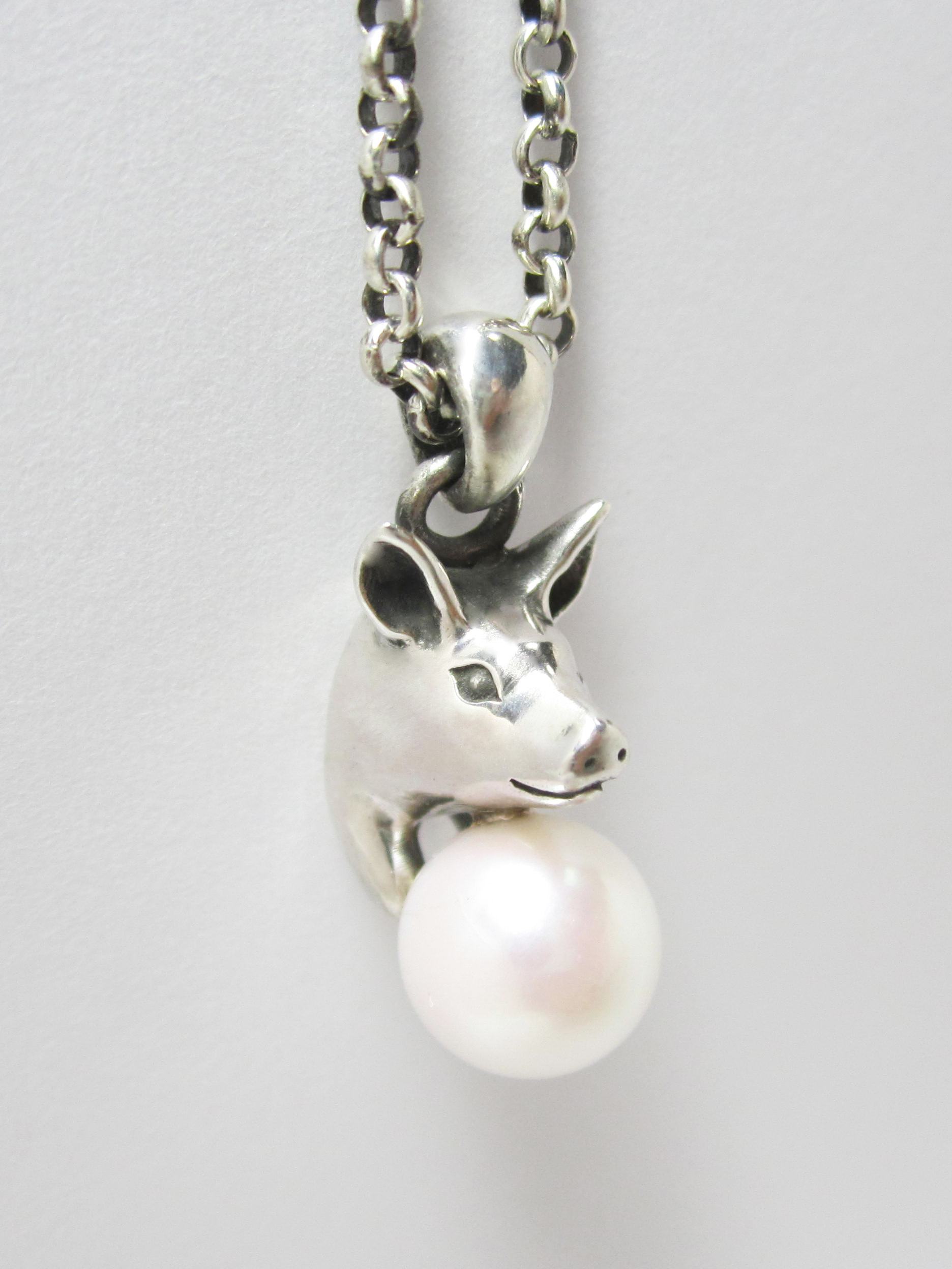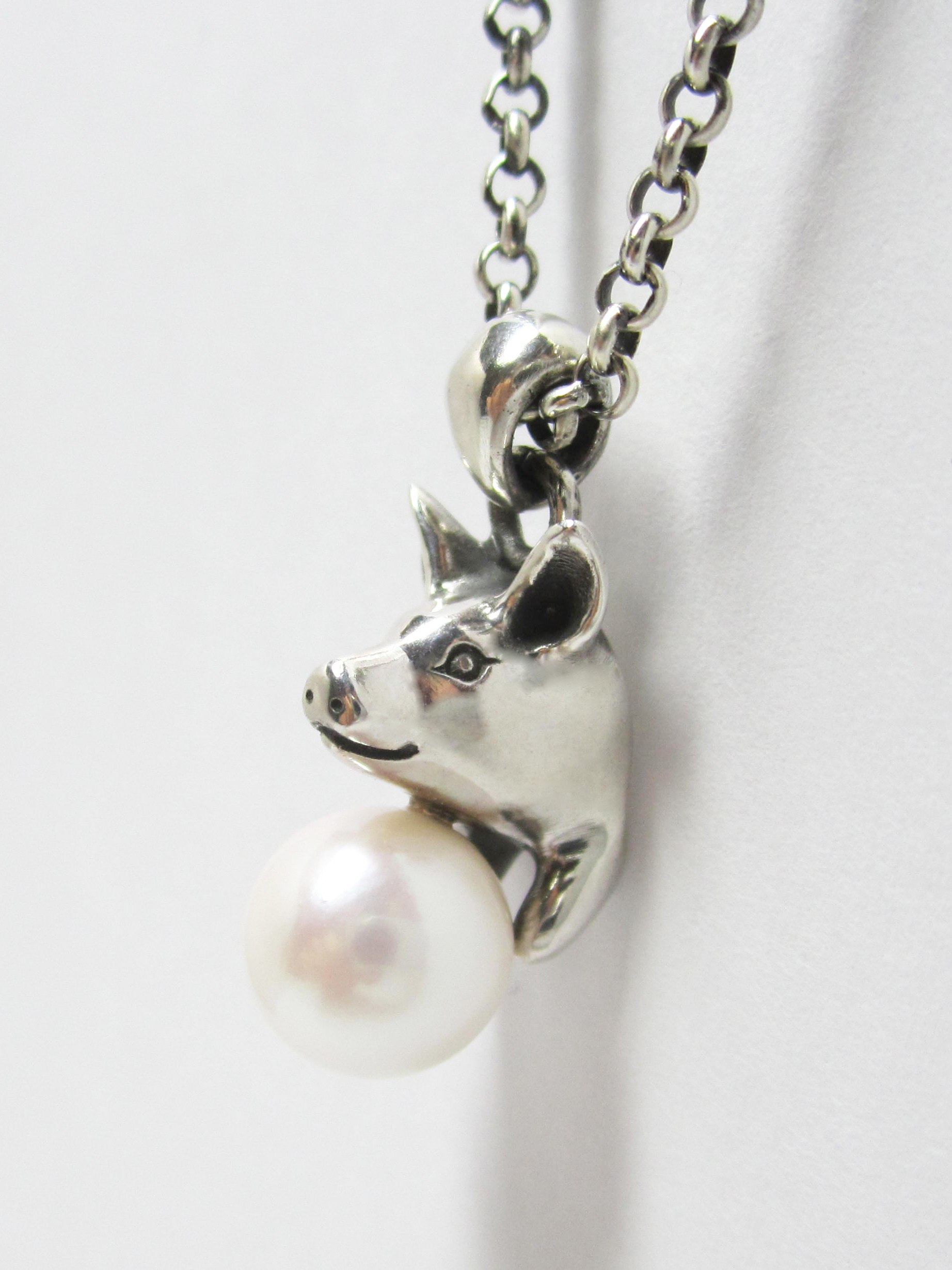 こちらのネックレスはアジャスター(長さ調整留め具)により装着時に長さを変えられます。 素材 SILVER925/アコヤ本真珠 アコヤ本真珠(直径7.5mm) ペンダントトップ 15mm (豚 /バチカンを含まない) チェーン 380mm |