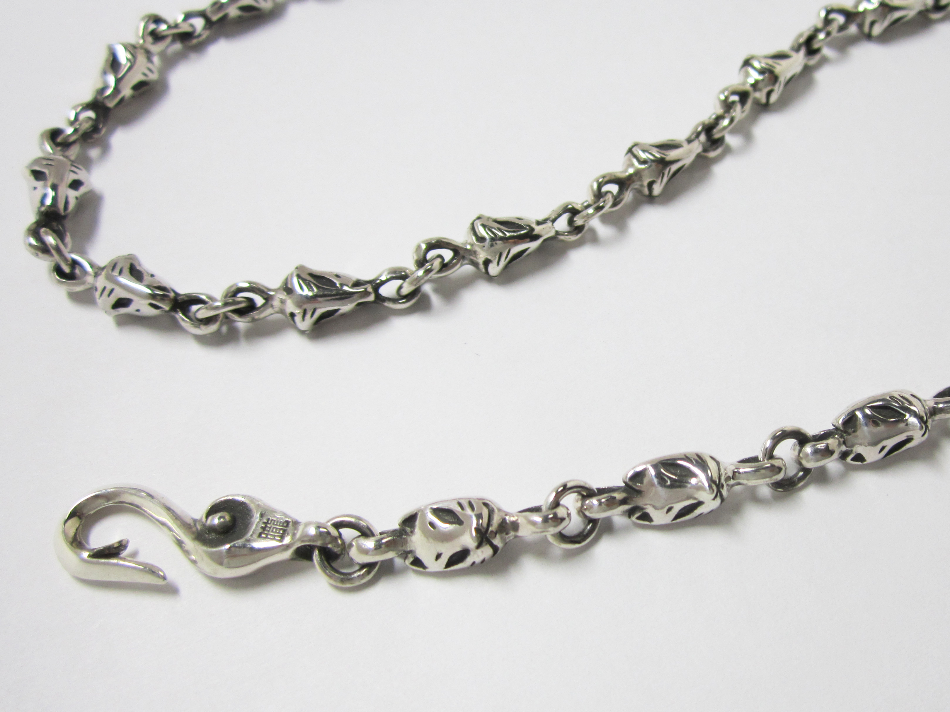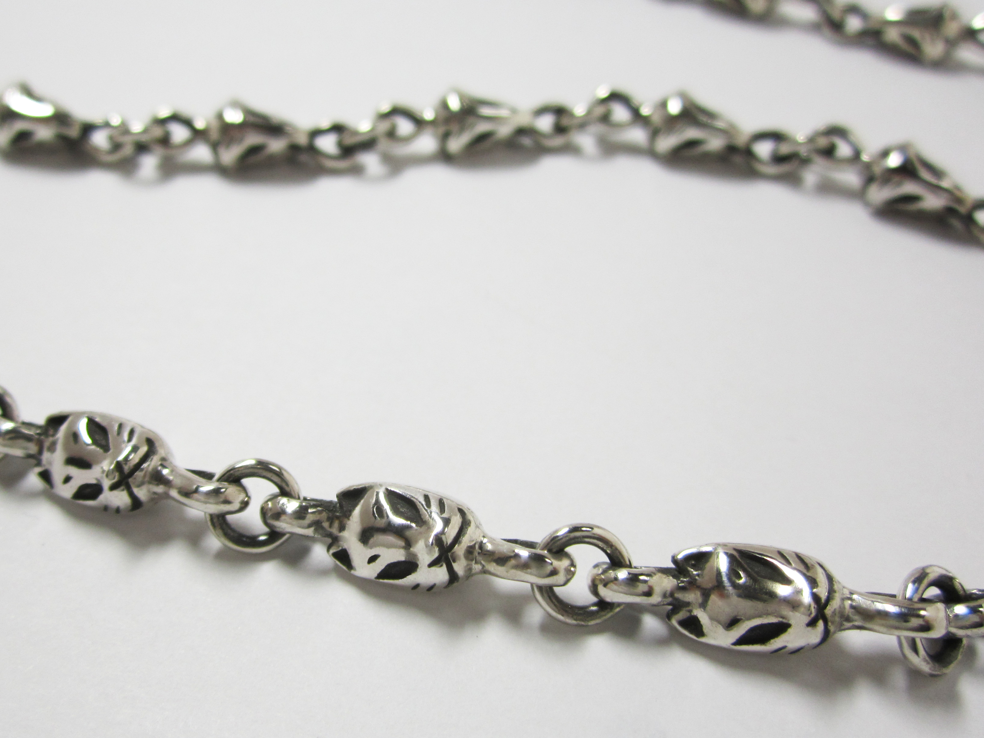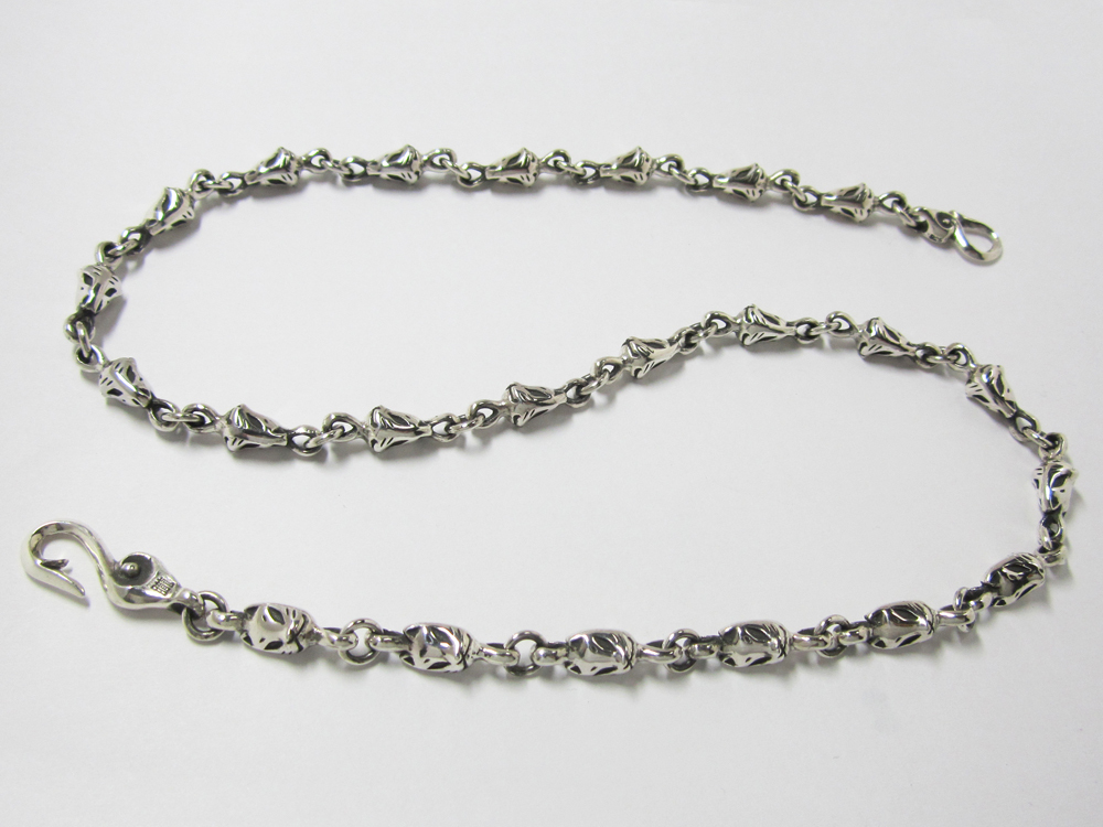 女性用チェーン推奨45㎝(狐面ピース21個) 男性用チェーン推奨50㎝(狐面ピース23個) (ご要望により50㎝以内での長さ調整を無料にていたします。) |