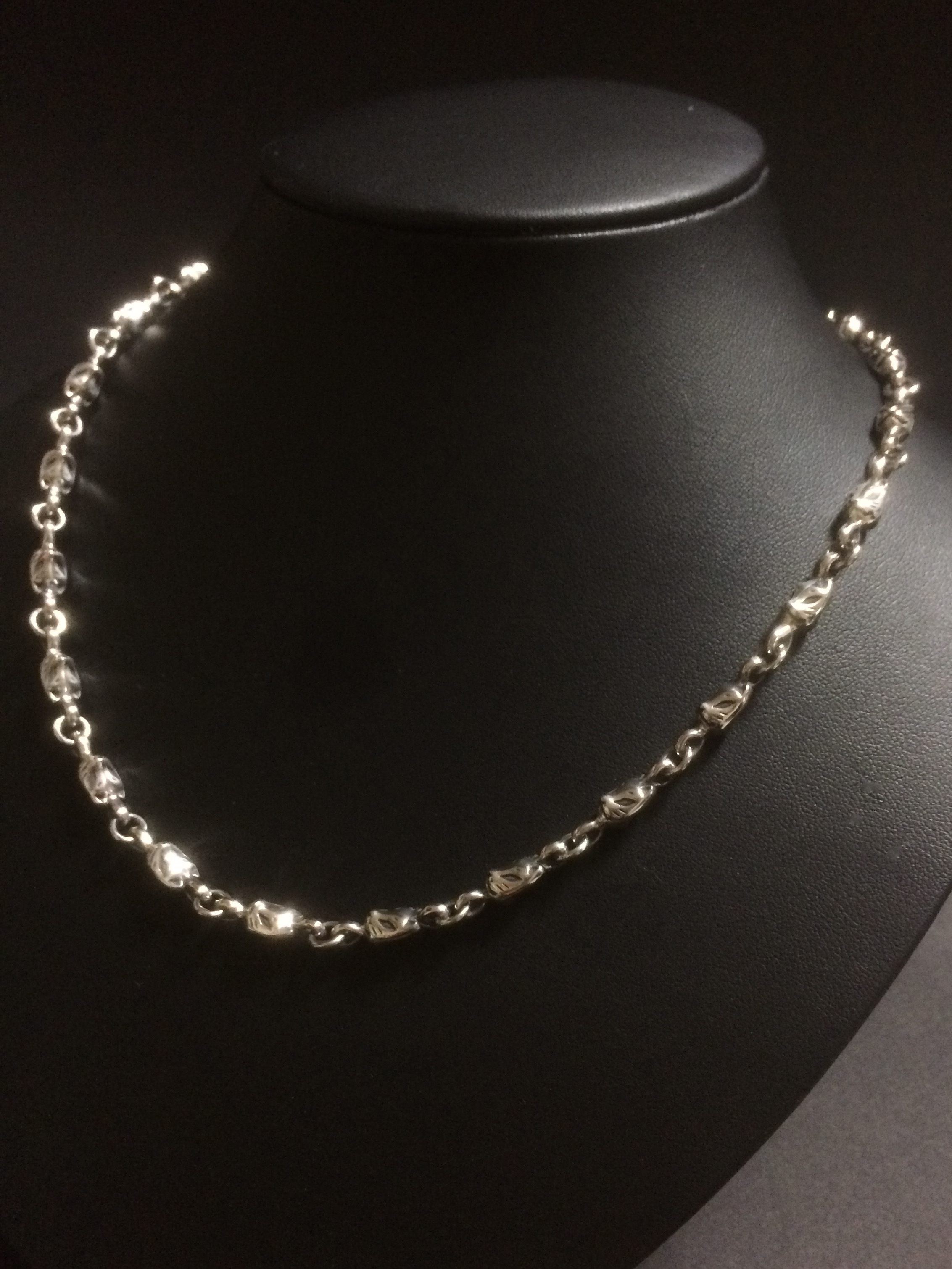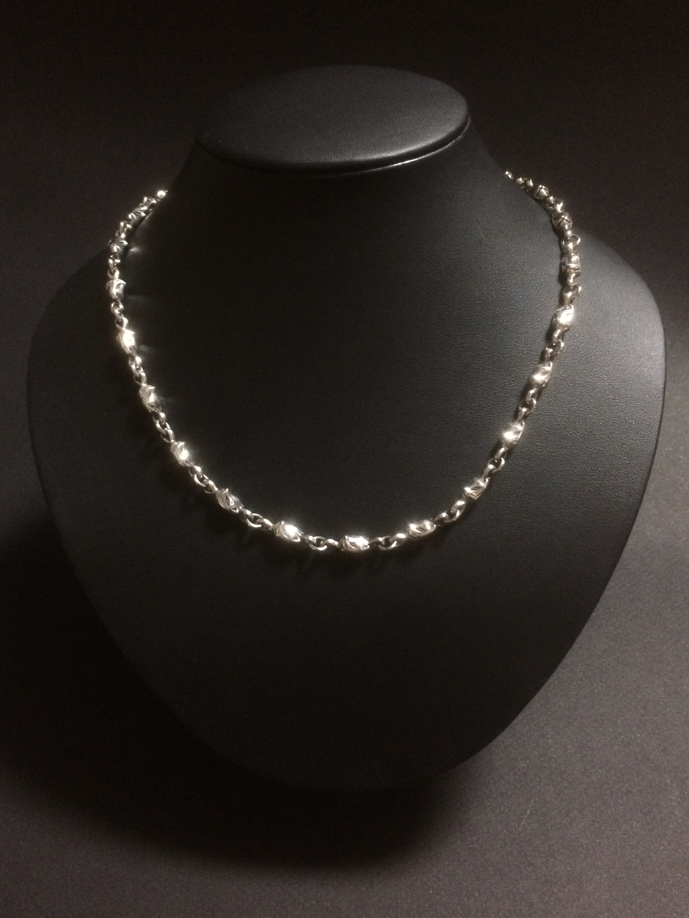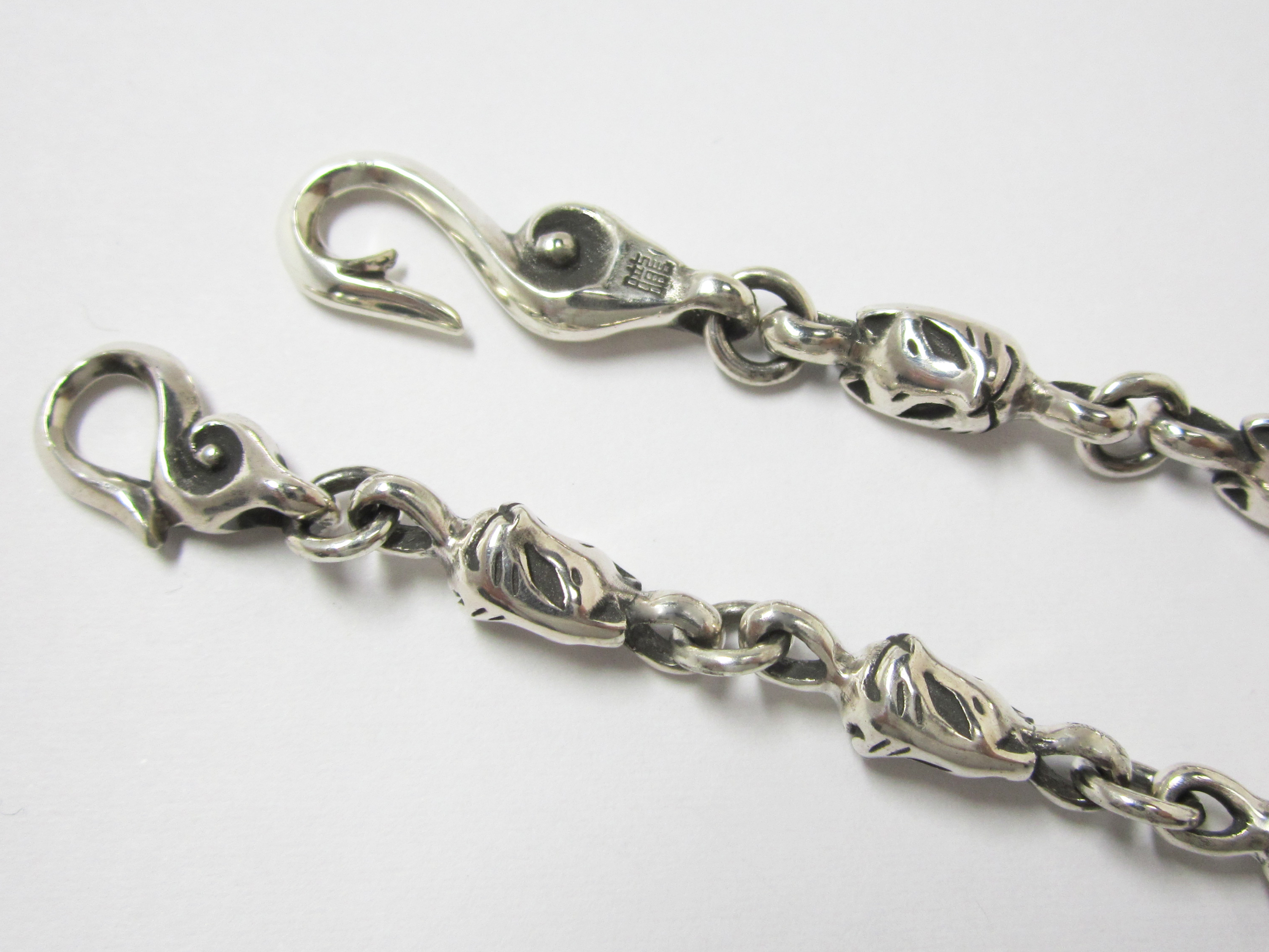 女性用チェーン推奨45㎝(狐面ピース21個) 男性用チェーン推奨50㎝(狐面ピース23個) (ご要望により50㎝以内での長さ調整を無料にていたします。) |