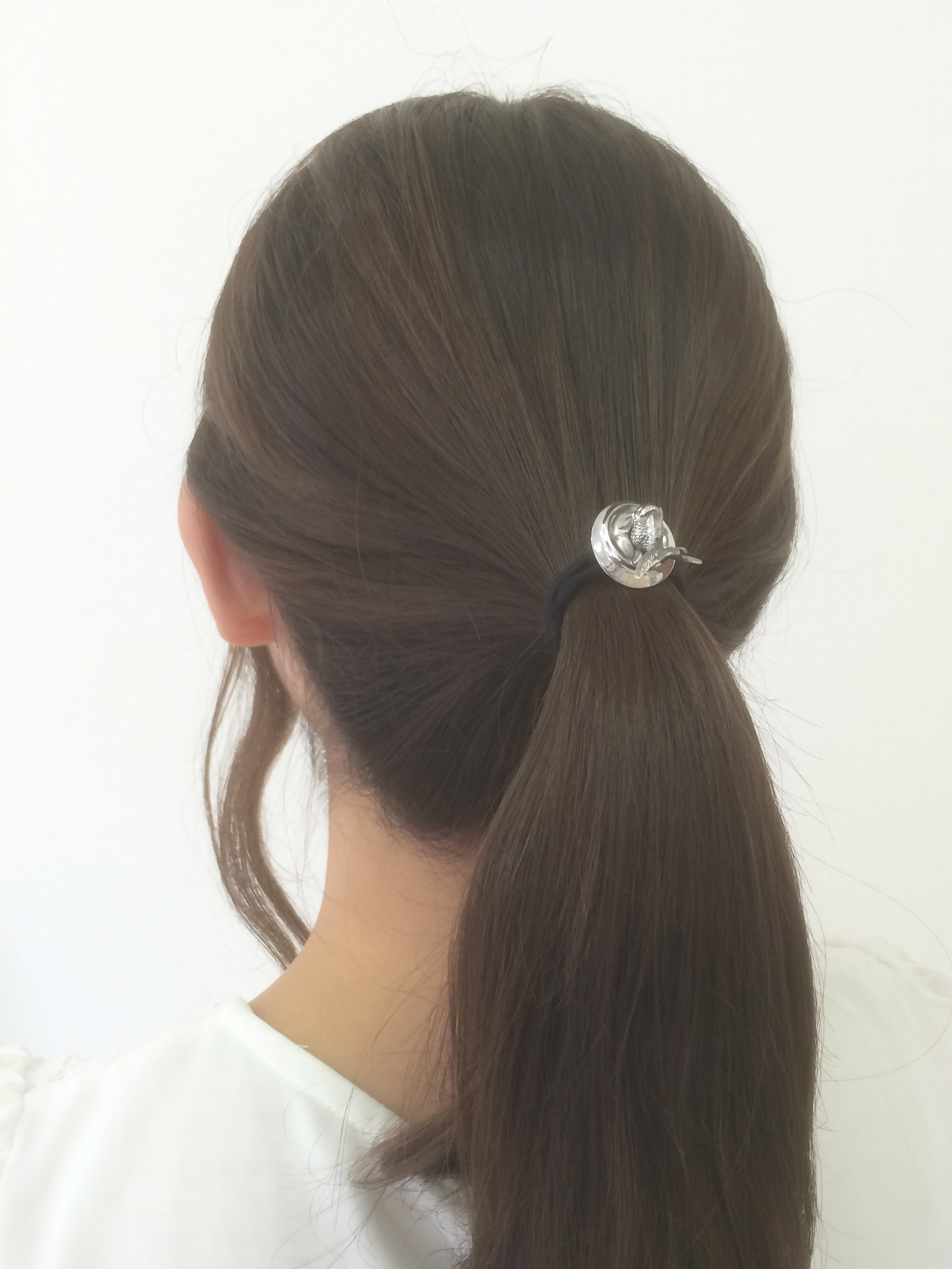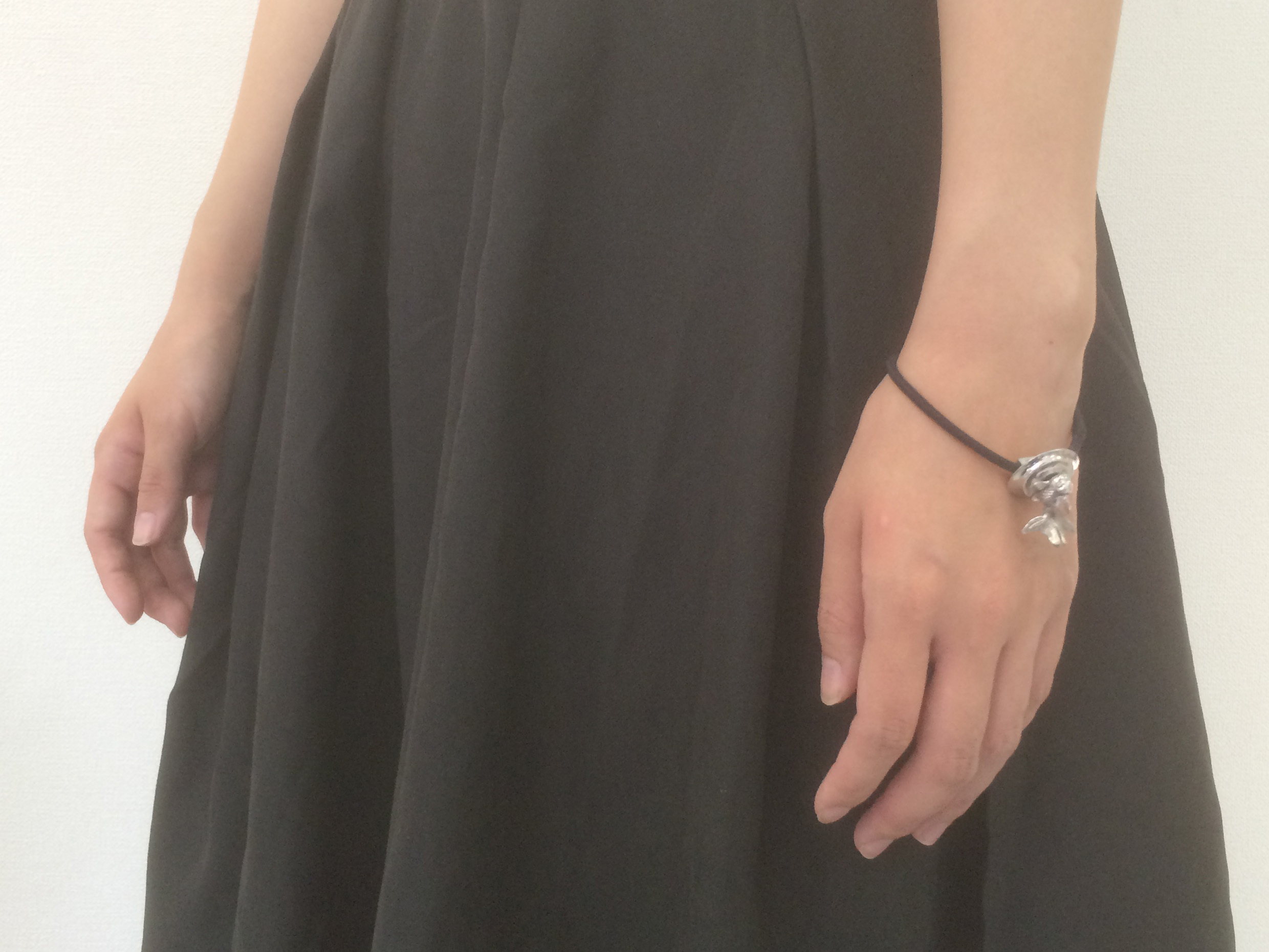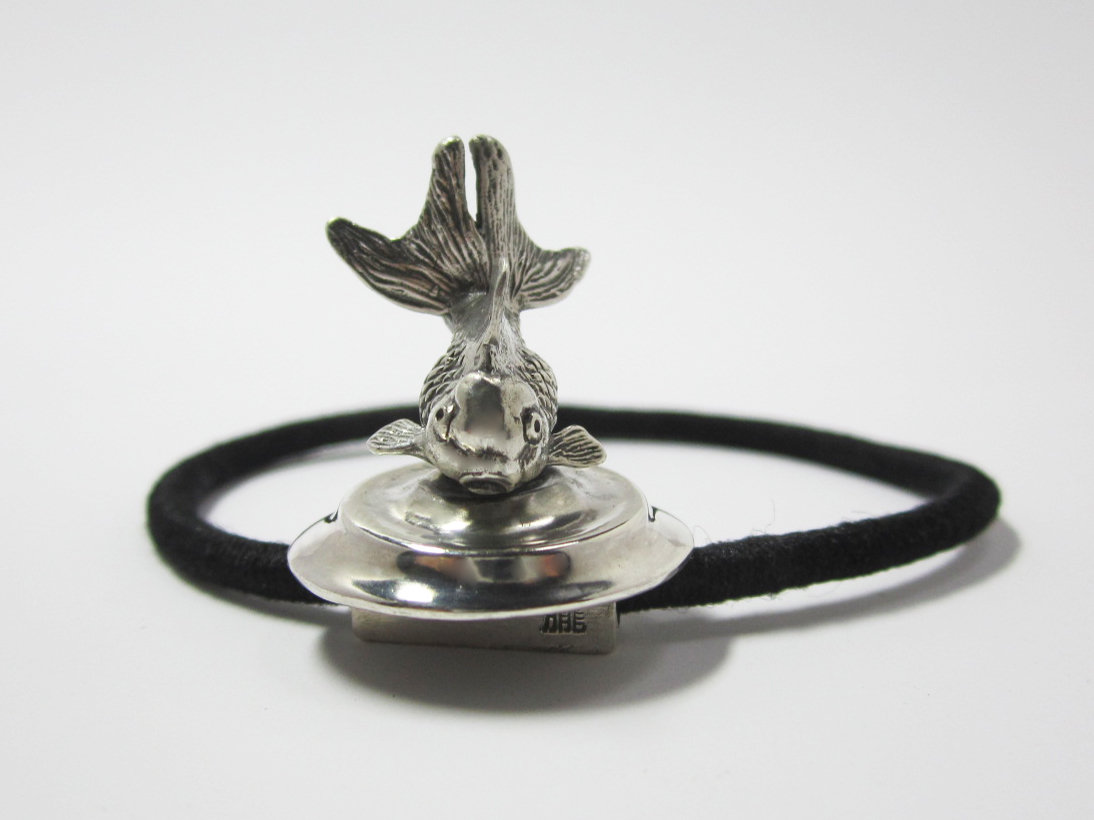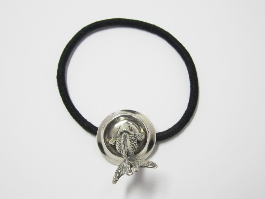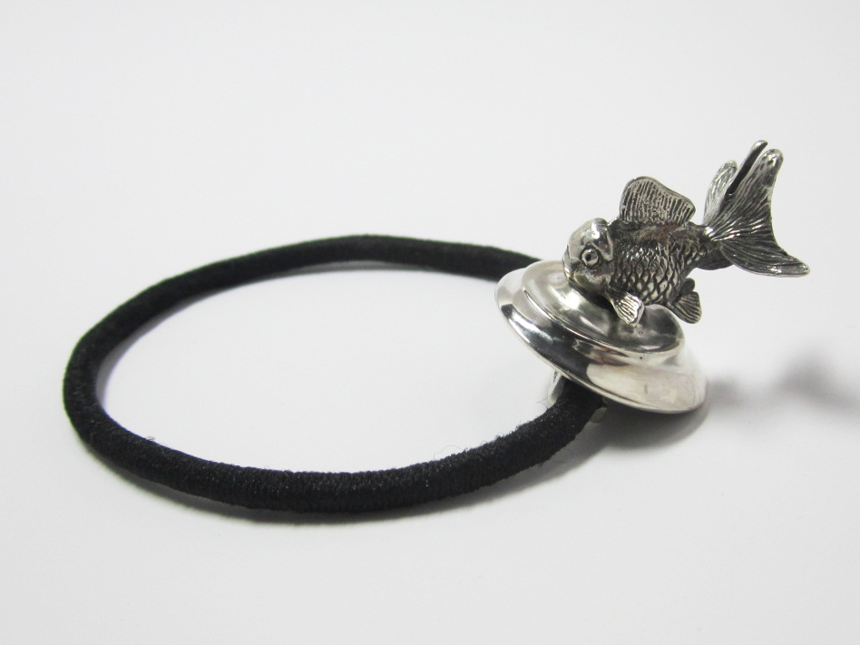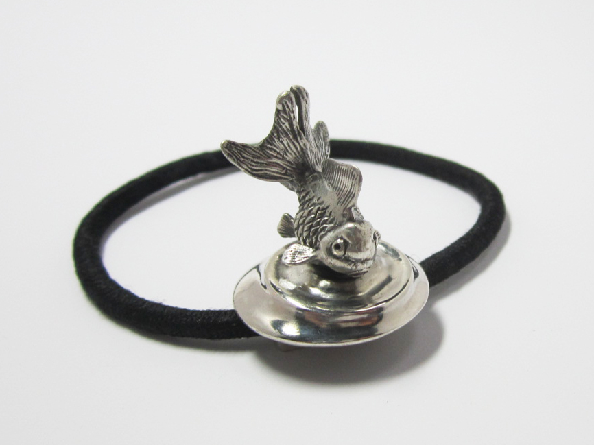 金魚約縦20mm横10mm / ゴムを通すパーツは3.5mmの穴が空けてあります。写真のゴムは直径3mmのゴムが通してあります。市販のゴムに付け替え可能です。 |