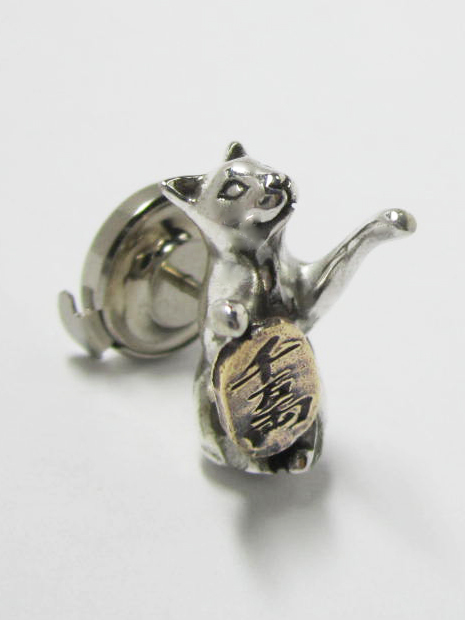 猫(SILVER925)/小判、キャッチ(BRASS)/ブローチピン(WHITE GOLD) |