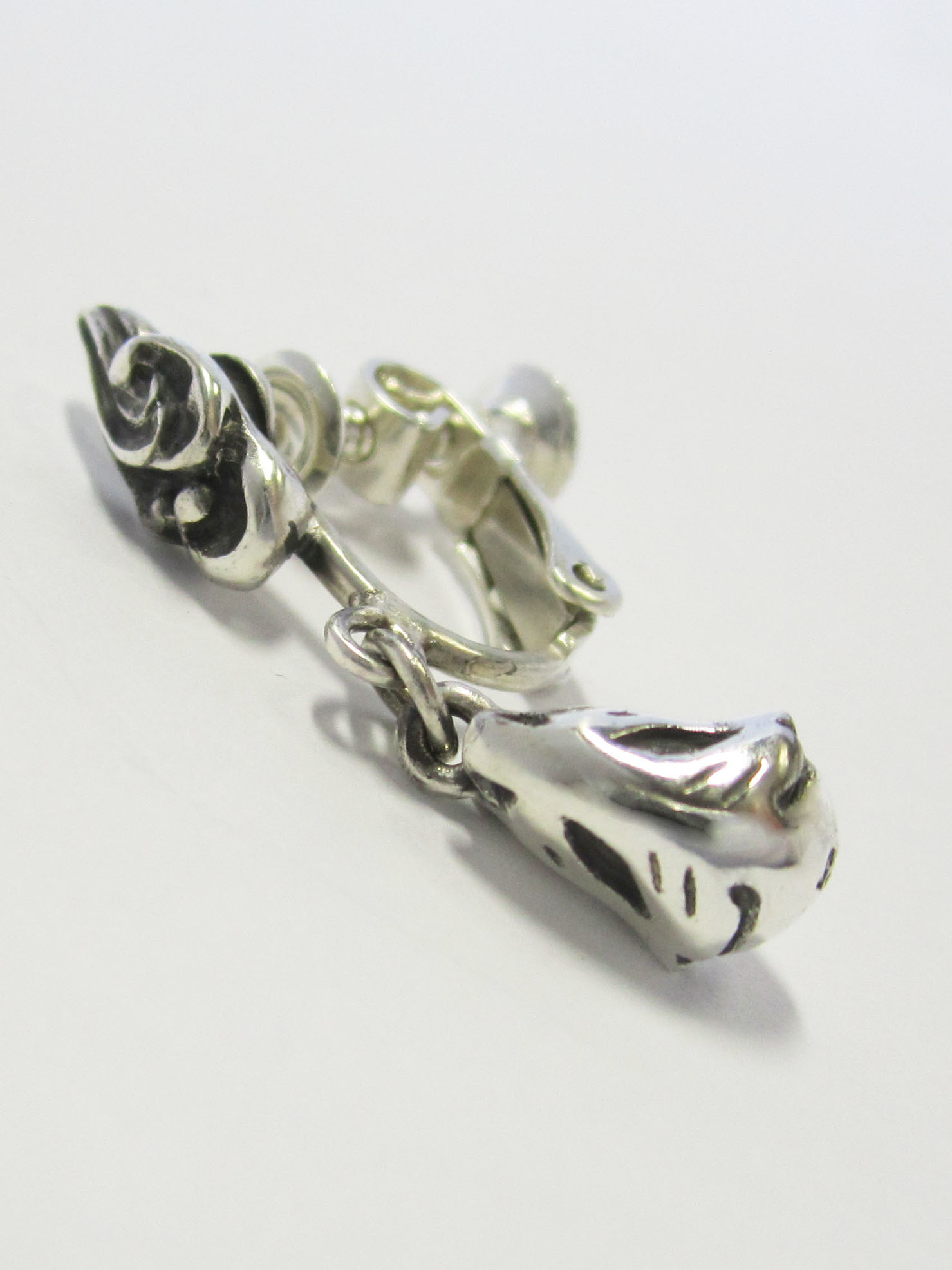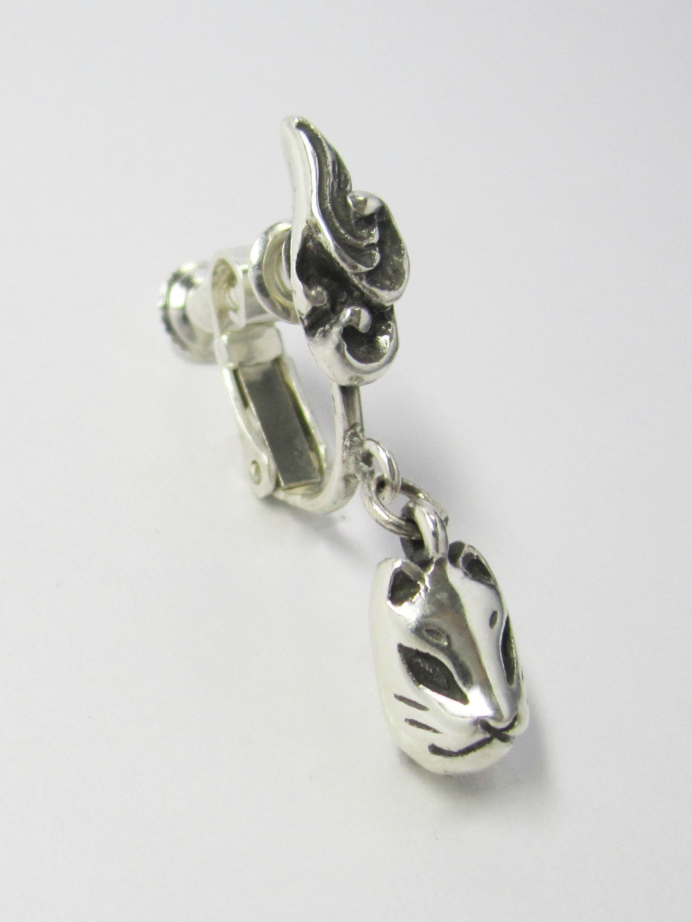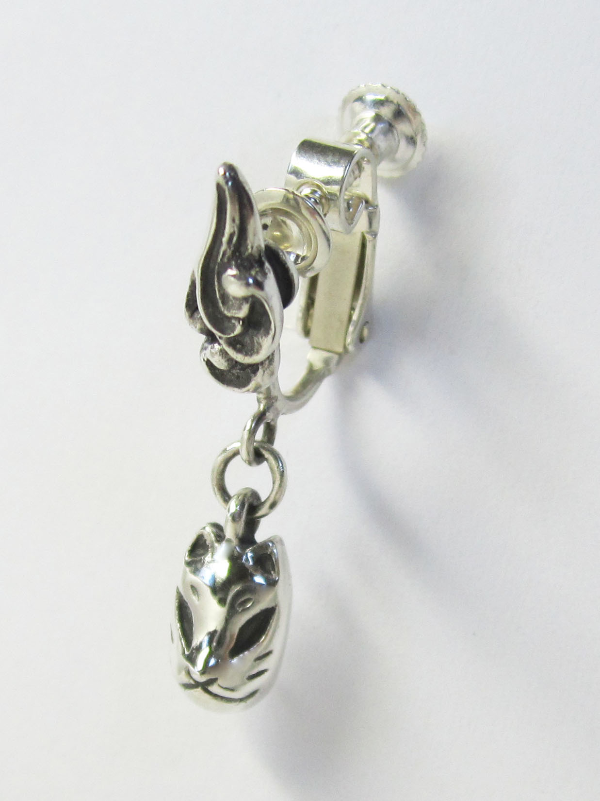 狐面HOOKPIERCEと同じ、狐面が表裏一体となったものを吊り下げております。
