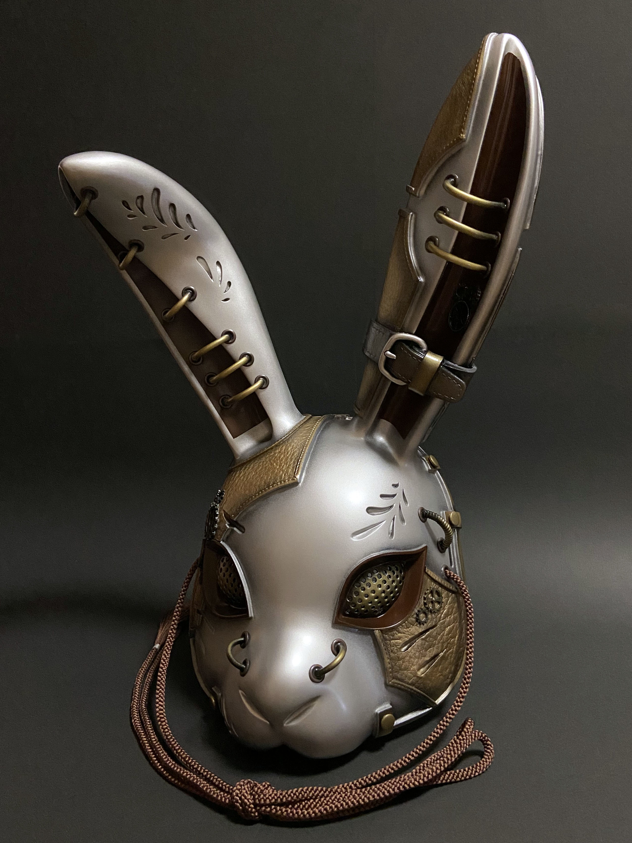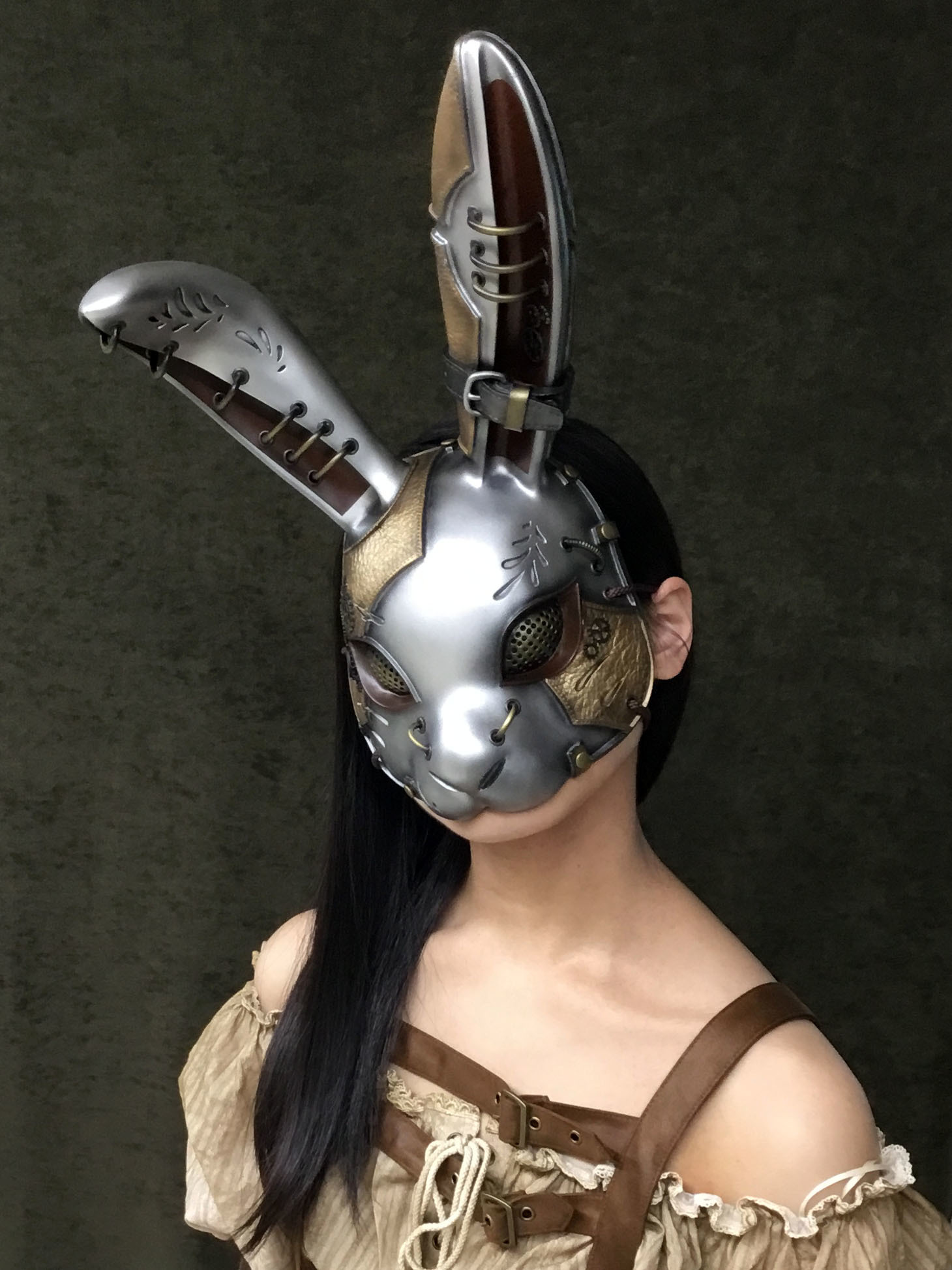 兎の顔 約縦400mm横170mm(口元から耳の付け根まで200mm) 顎(アゴ)がありませんので、男女問わずご装着いただけます。 |