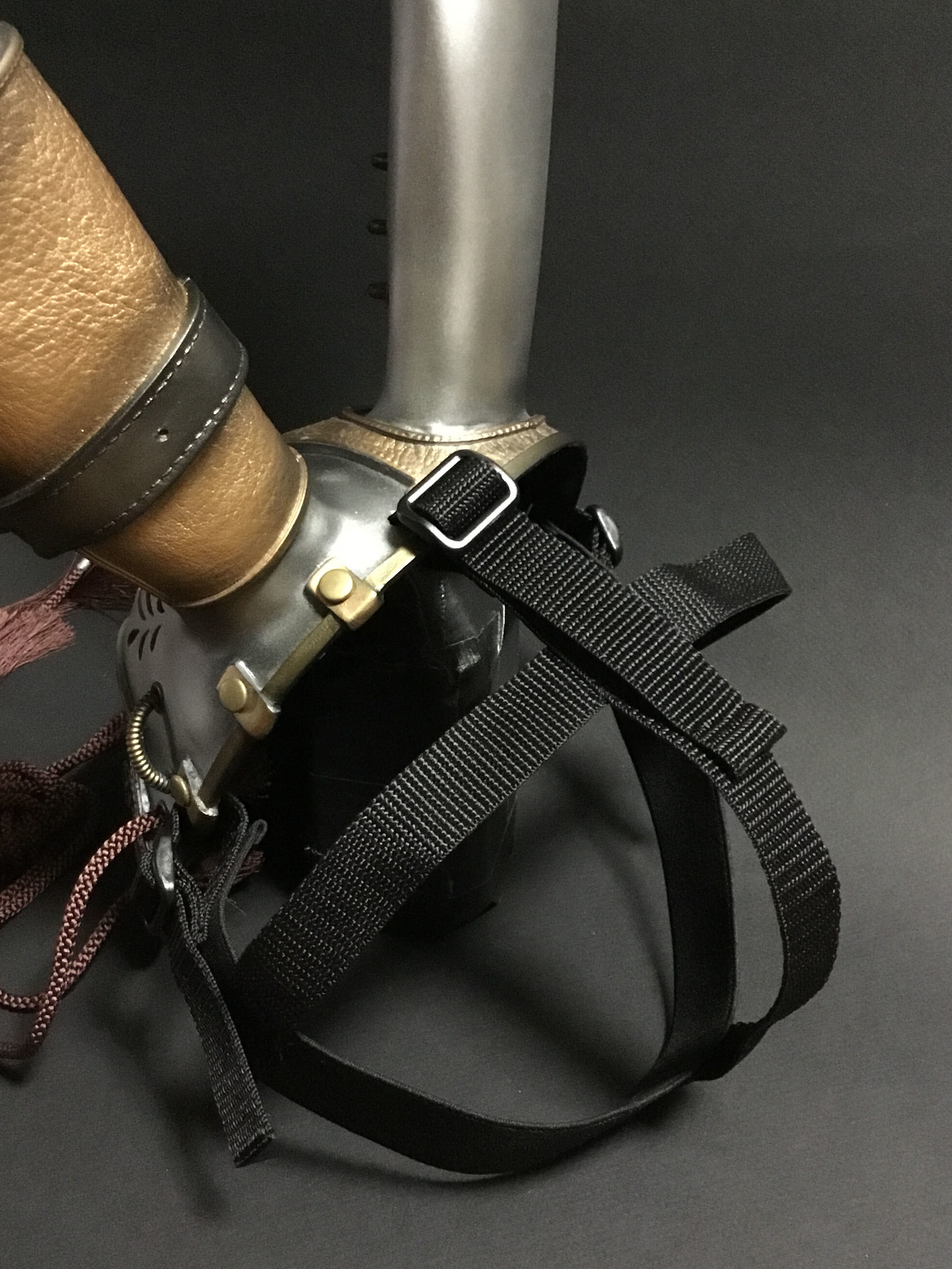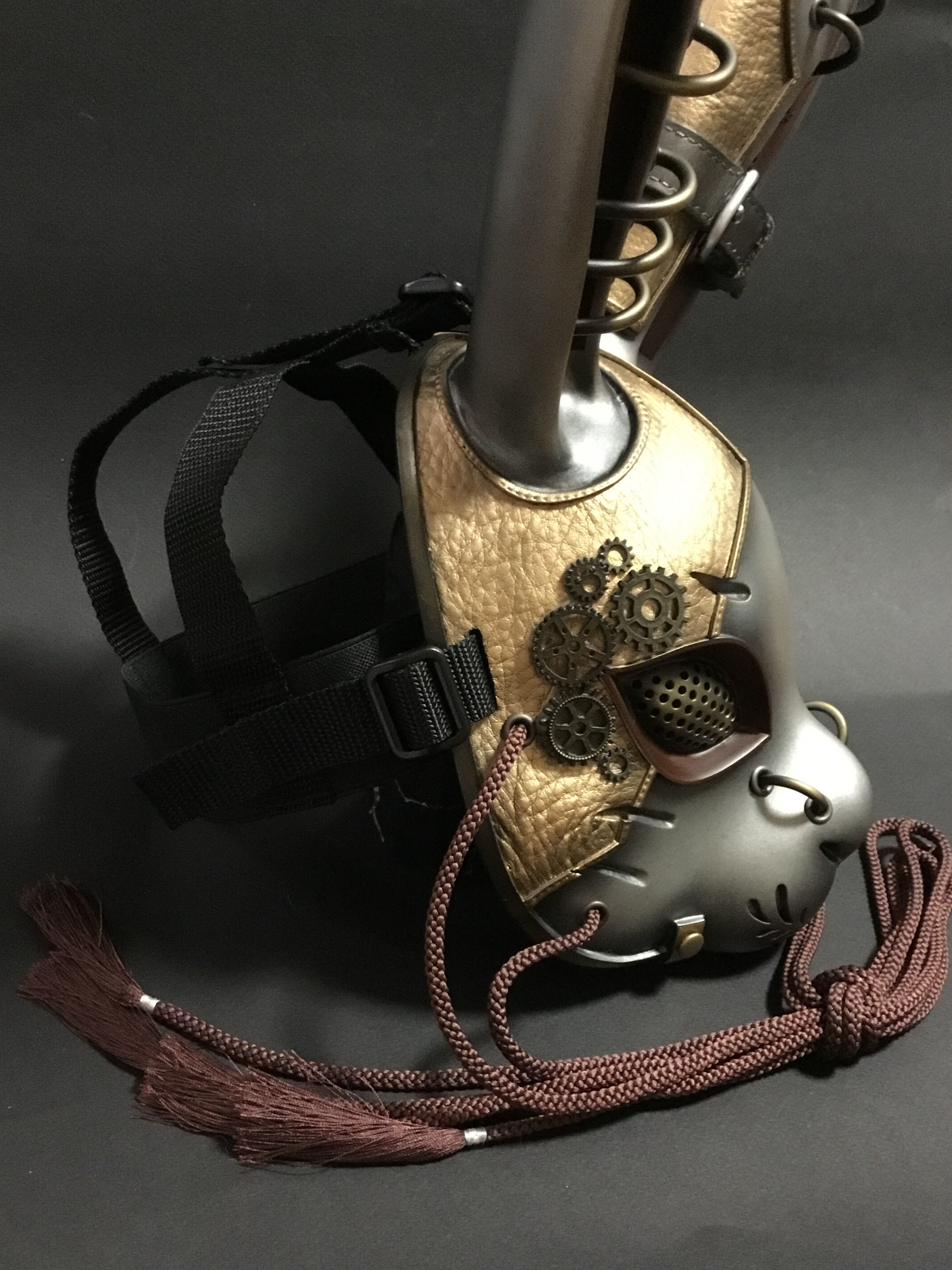FRP(繊維強化プラスチック)製 ウレタン&アクリル塗装 表情がレザー調の箇所がございますが、全てFRPで出来ており、本物の皮革は使用しておりません。 ハトメ&カシメパーツのみ真鍮 |