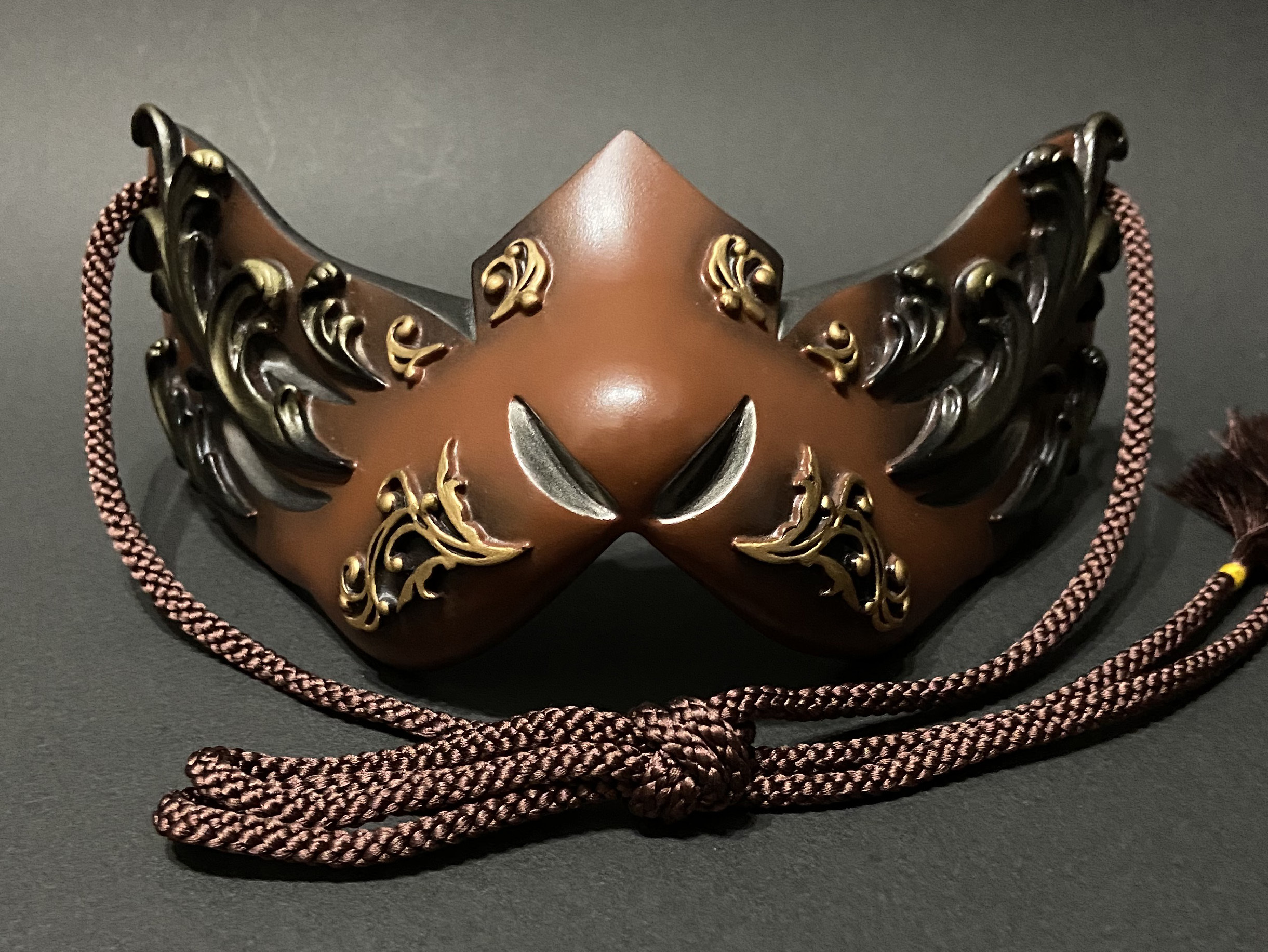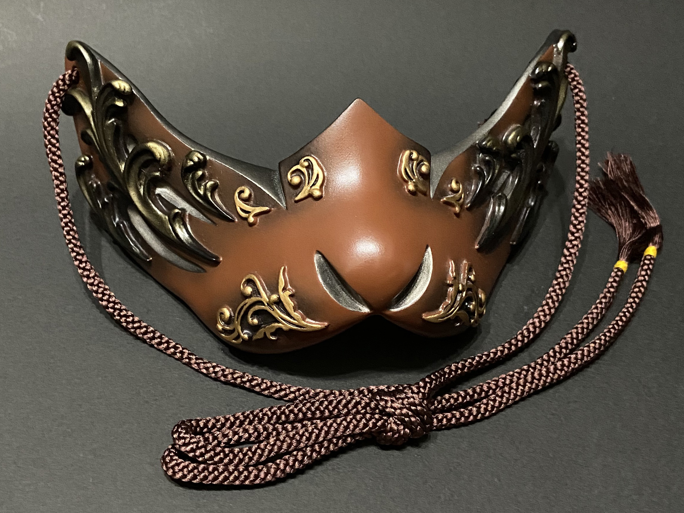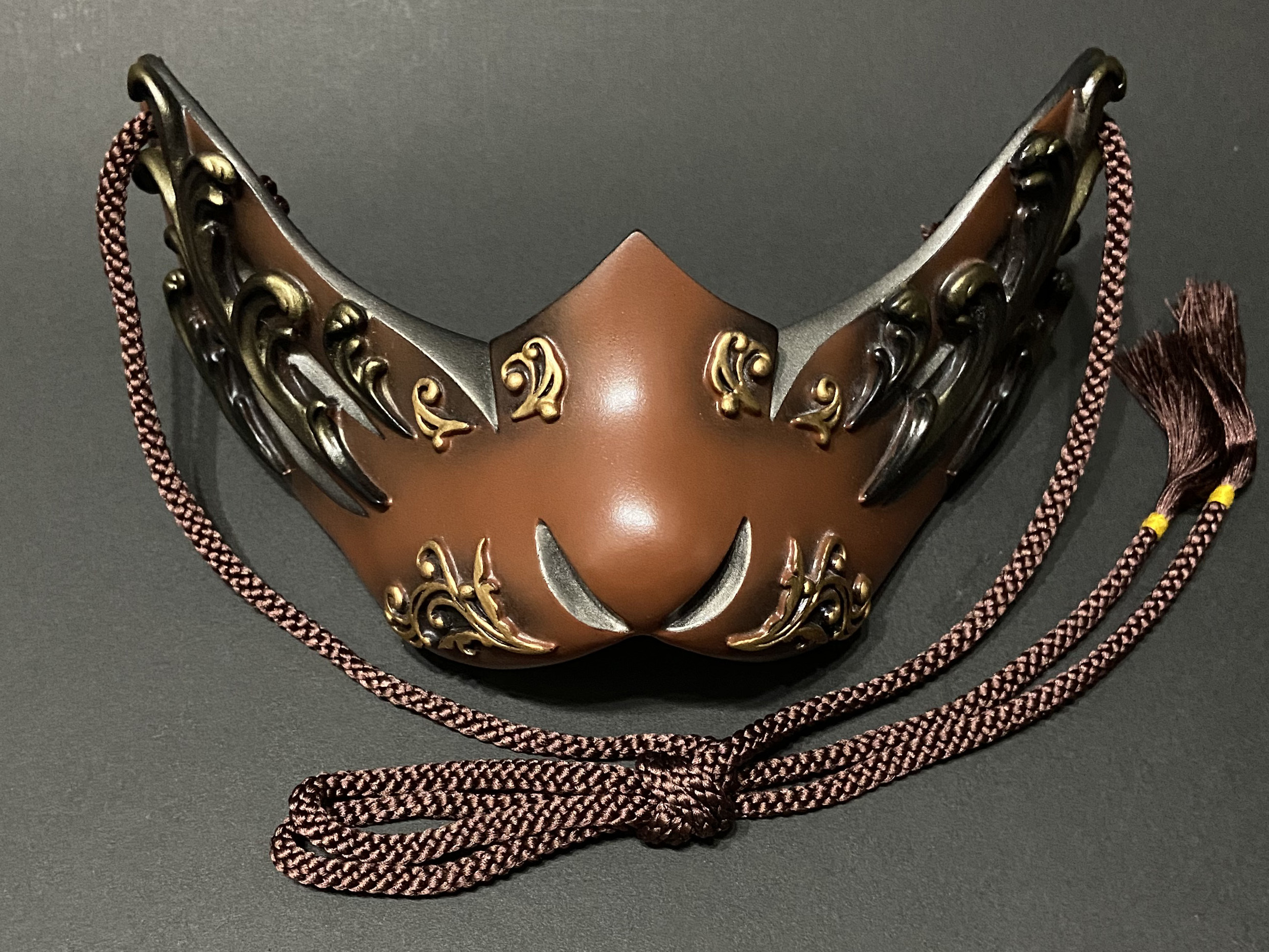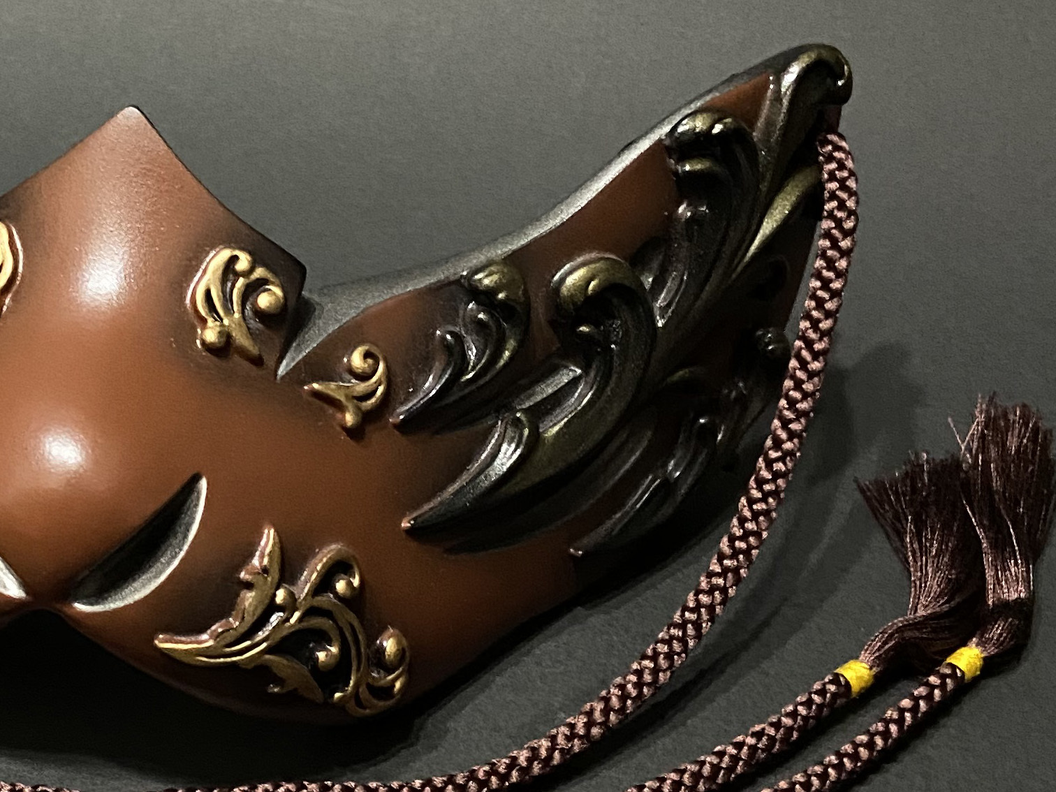 こちらの狐面には、ゴシック建築やギリシャ彫刻における代表的なモチーフである『アカンサス』の葉を、面全体にレリーフで装飾しております。