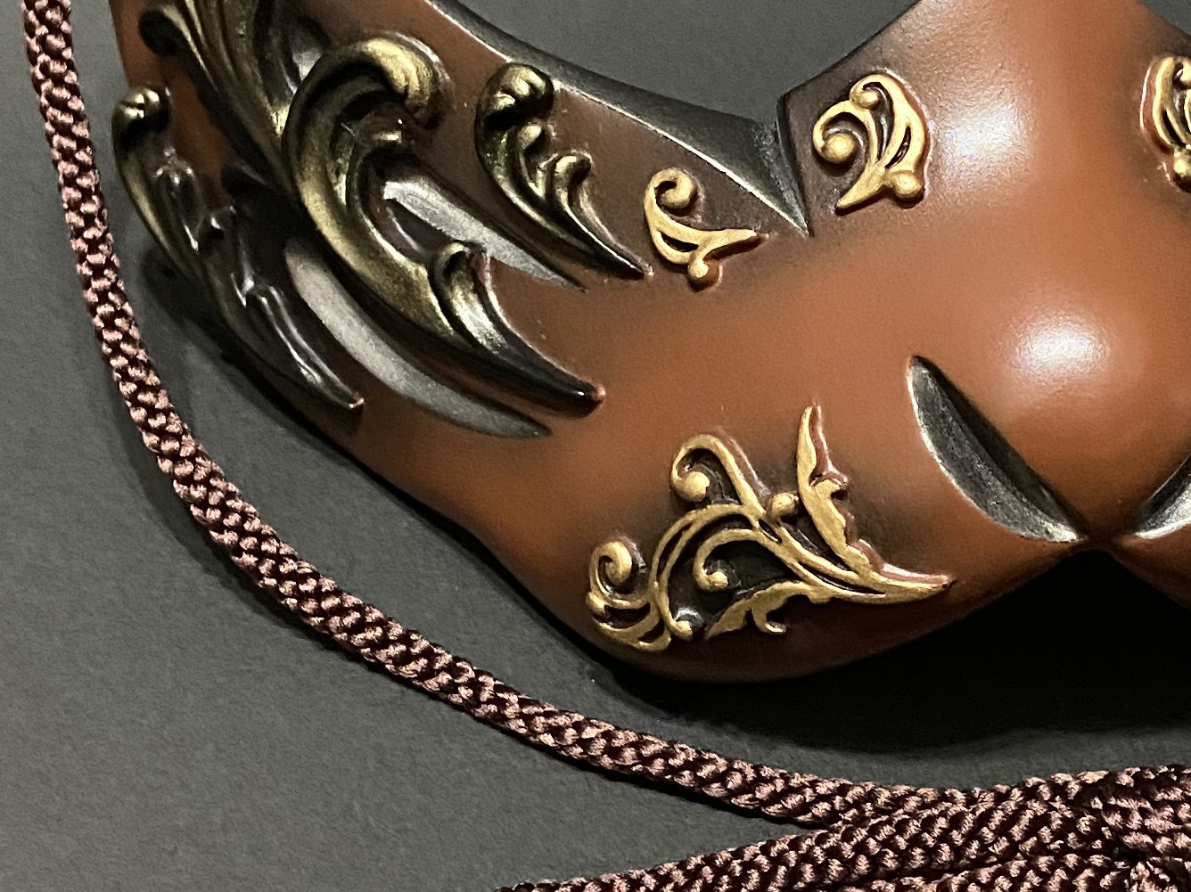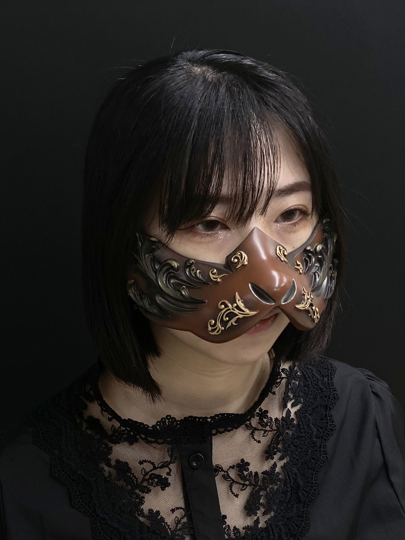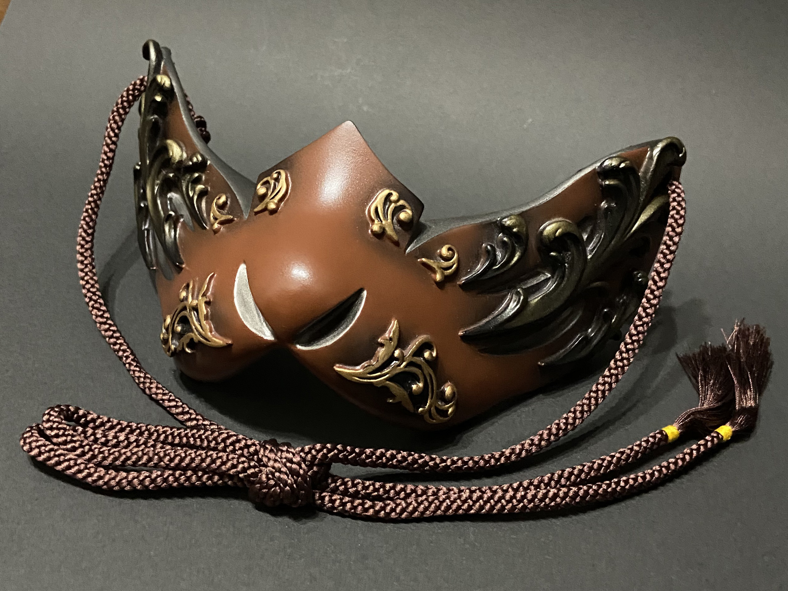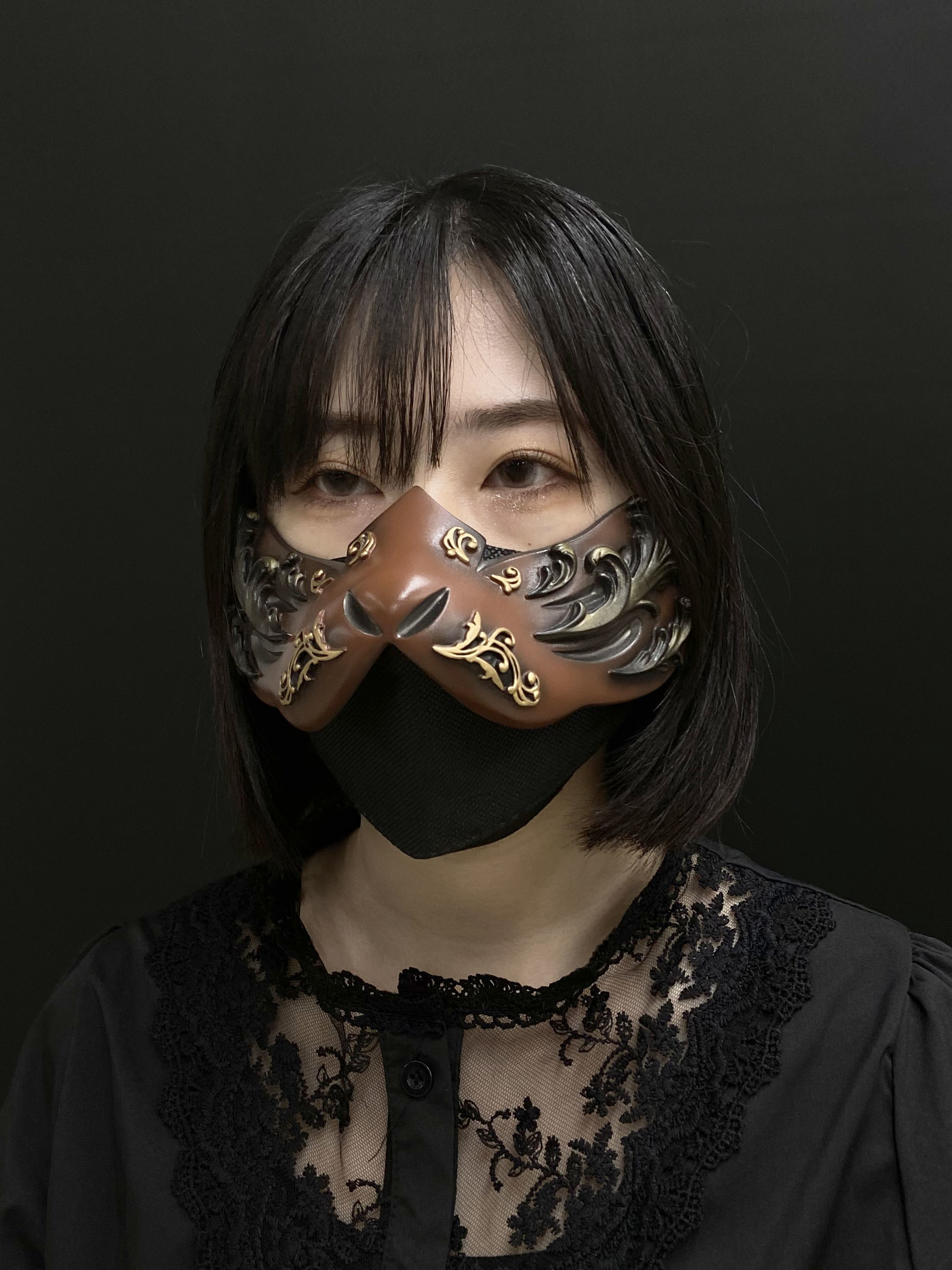 こちらの狐面には、ゴシック建築やギリシャ彫刻における代表的なモチーフである『アカンサス』の葉を、面全体にレリーフで装飾しております。