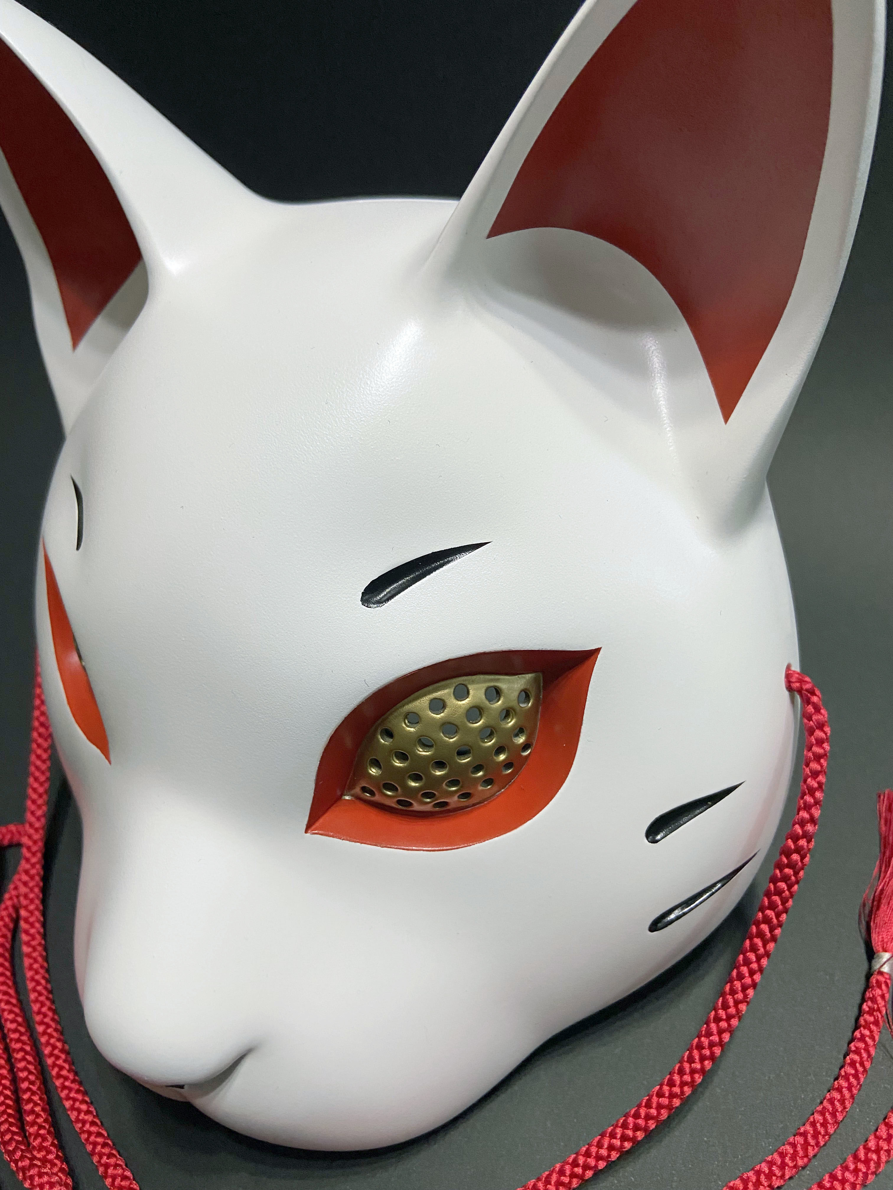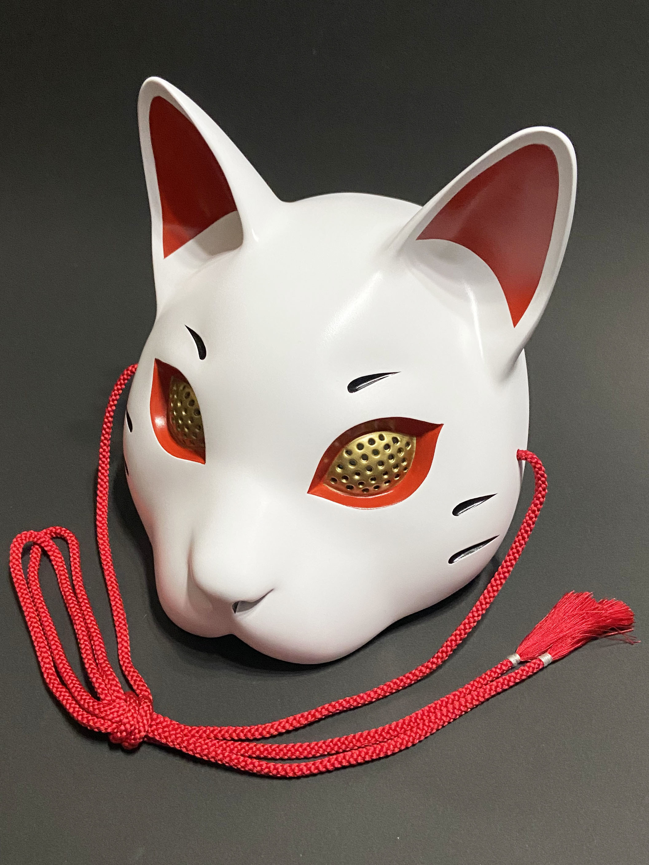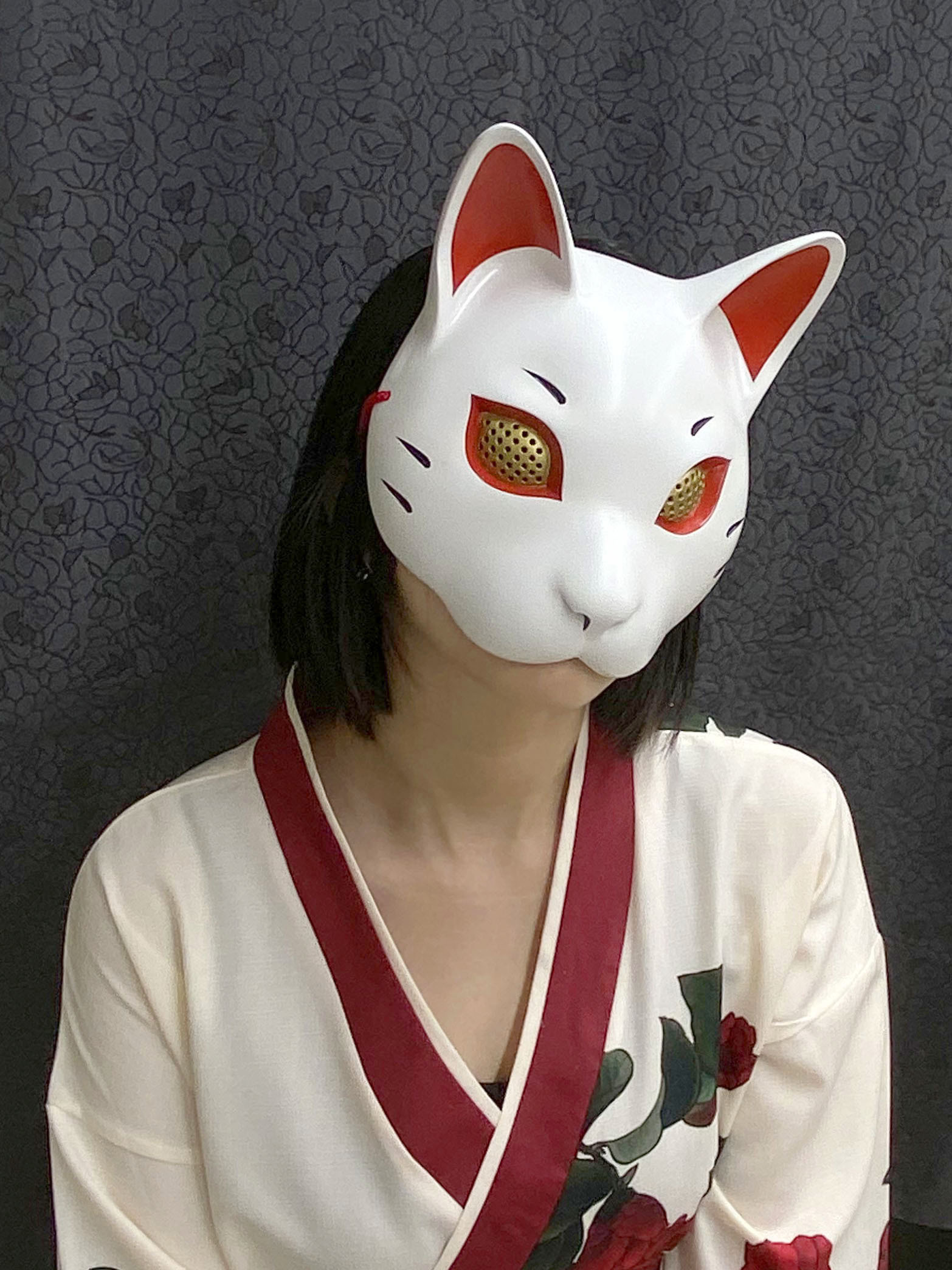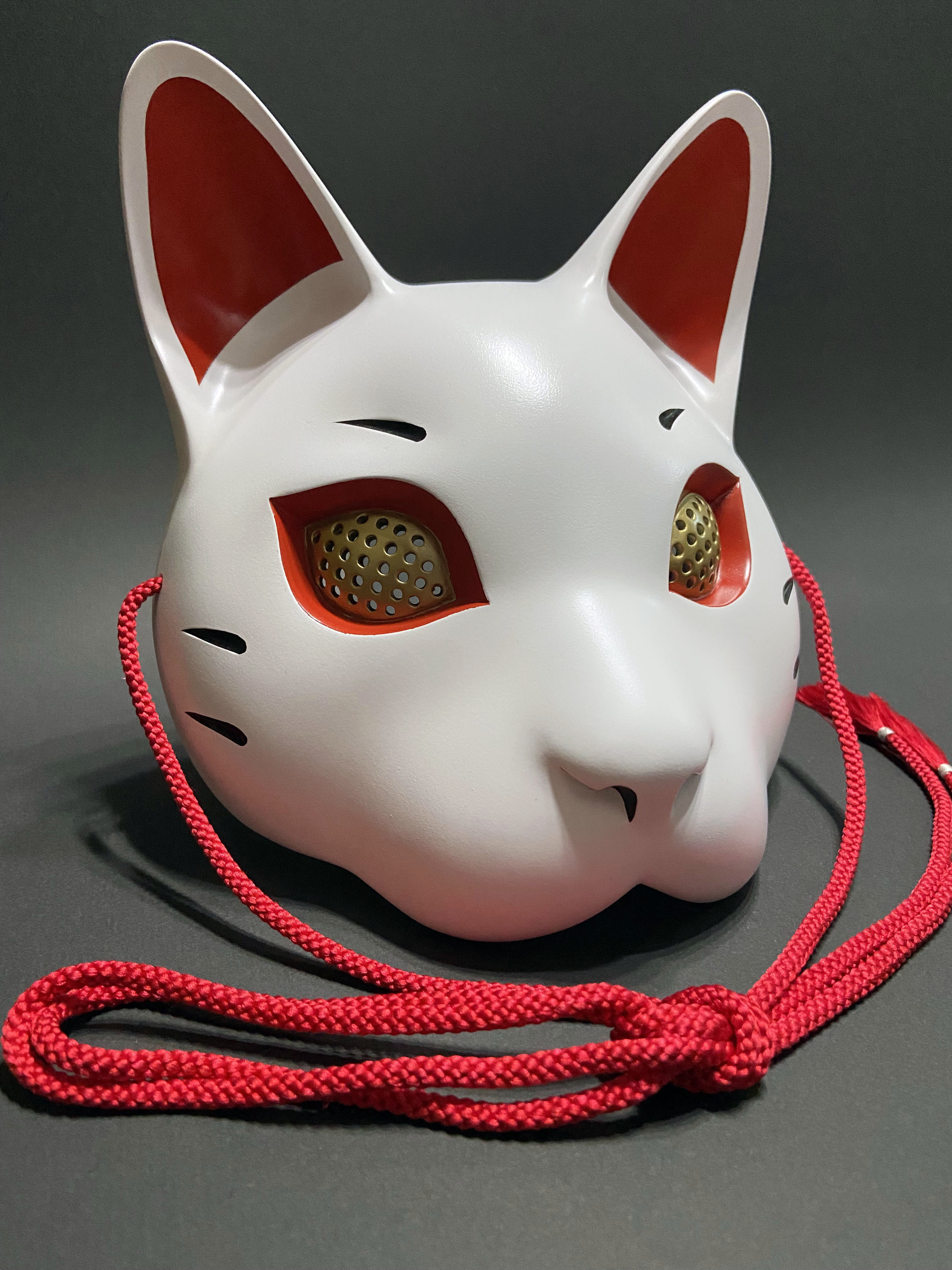 朧のマスクは現在すべての作品が、マスクに紐を接着(一体型)した状態となっております。