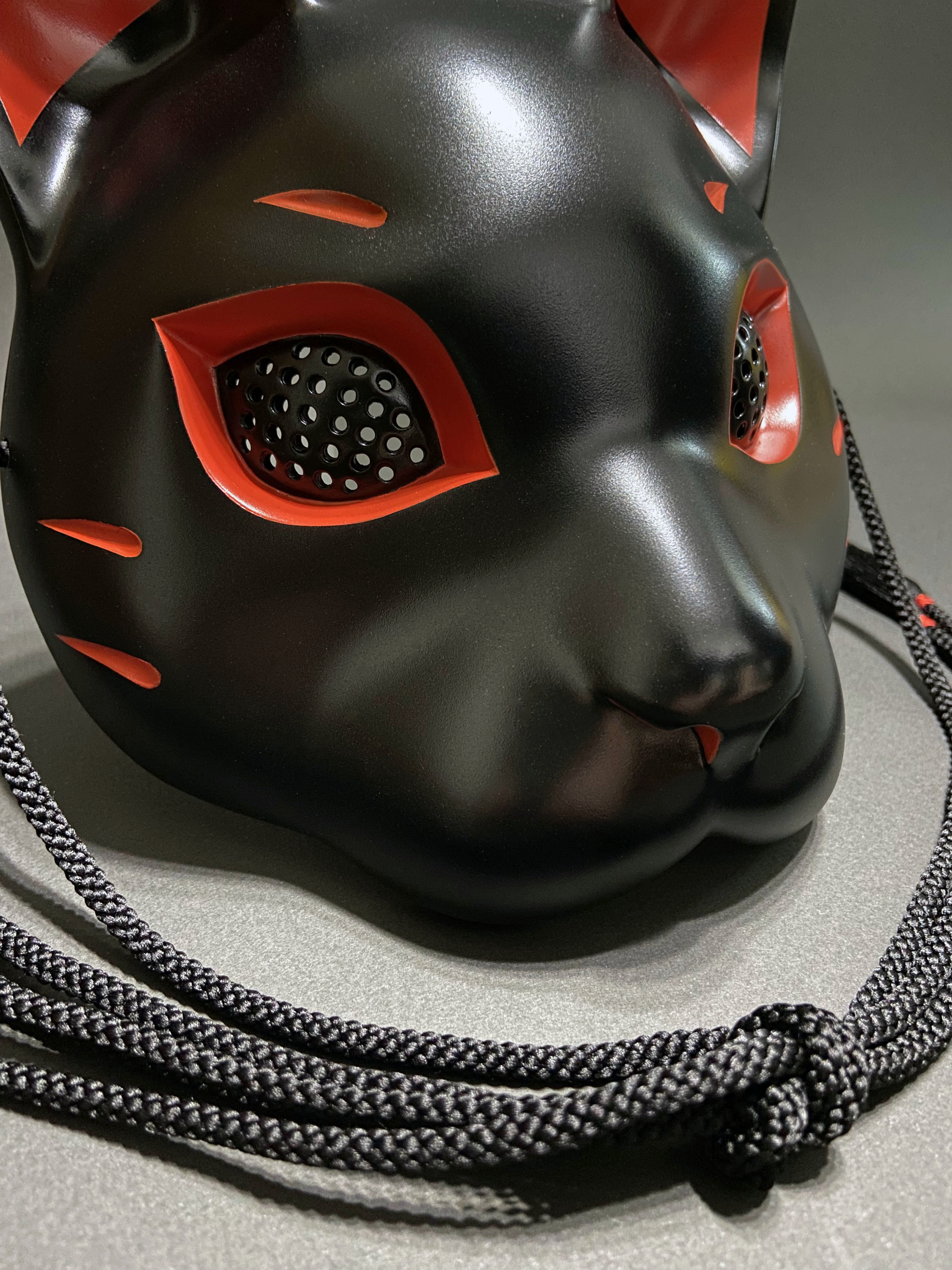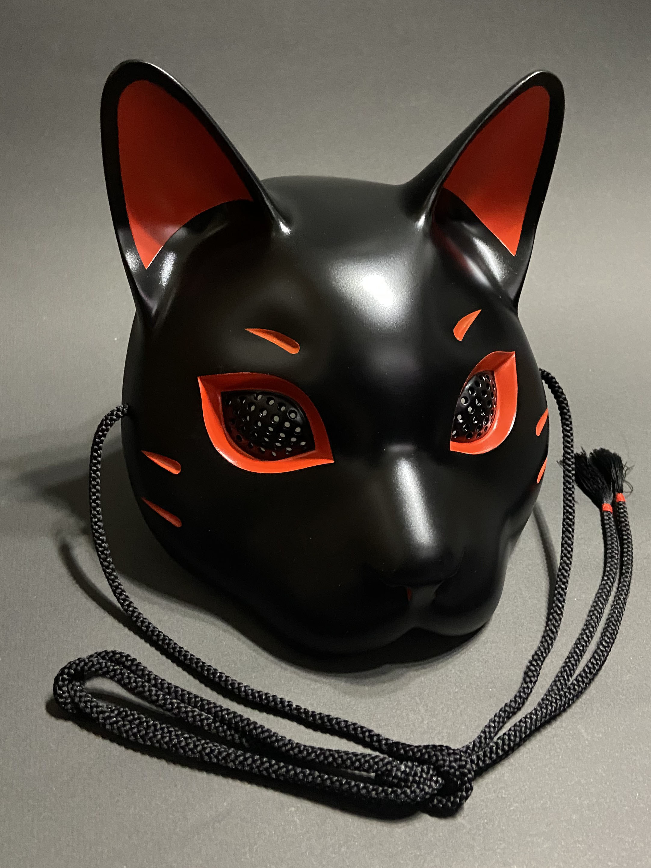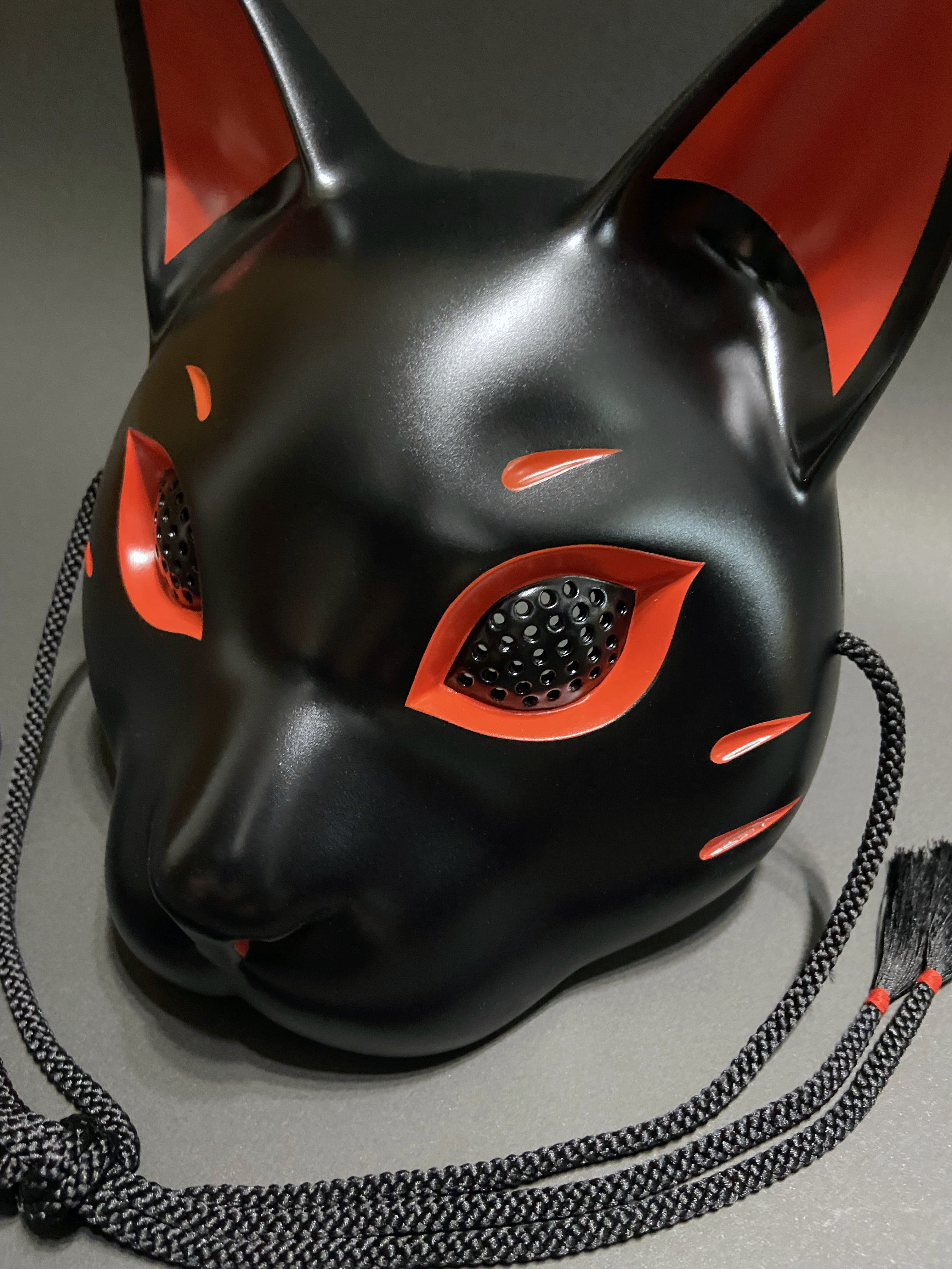 朧のマスクは現在すべての作品が、マスクに紐を接着(一体型)した状態となっております。