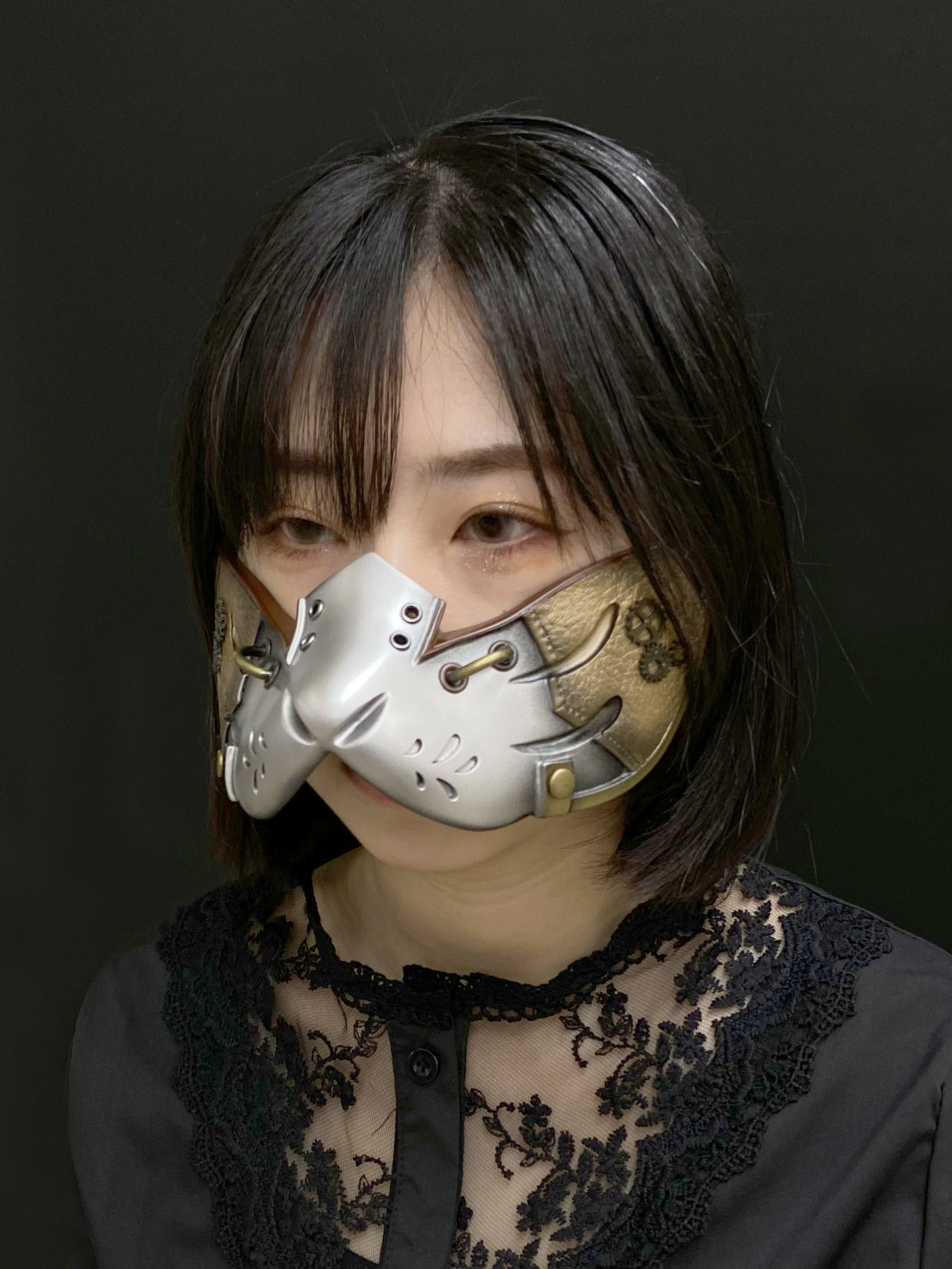 朧のマスクは現在すべての作品が、マスクに紐を接着(一体型)した状態となっております。