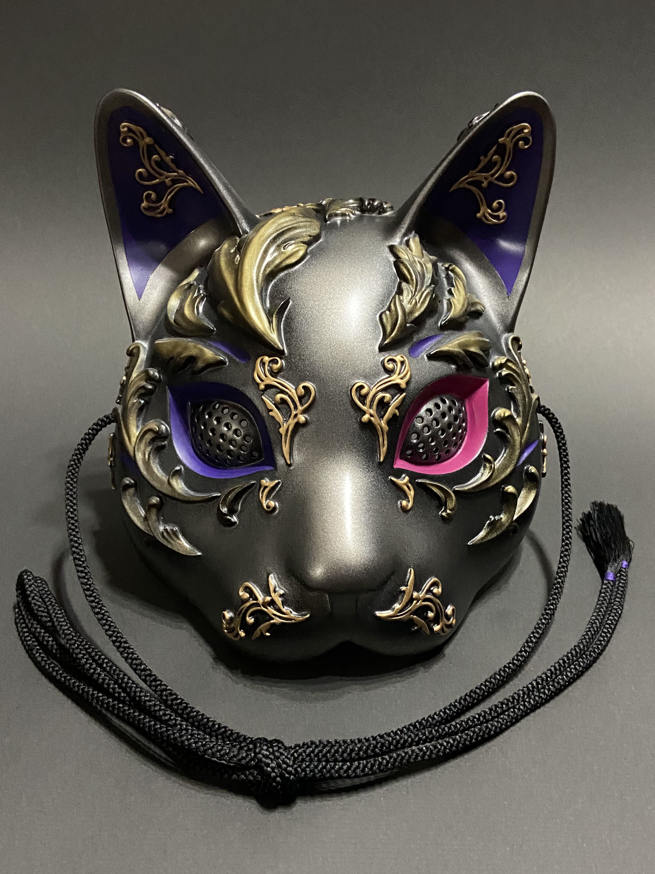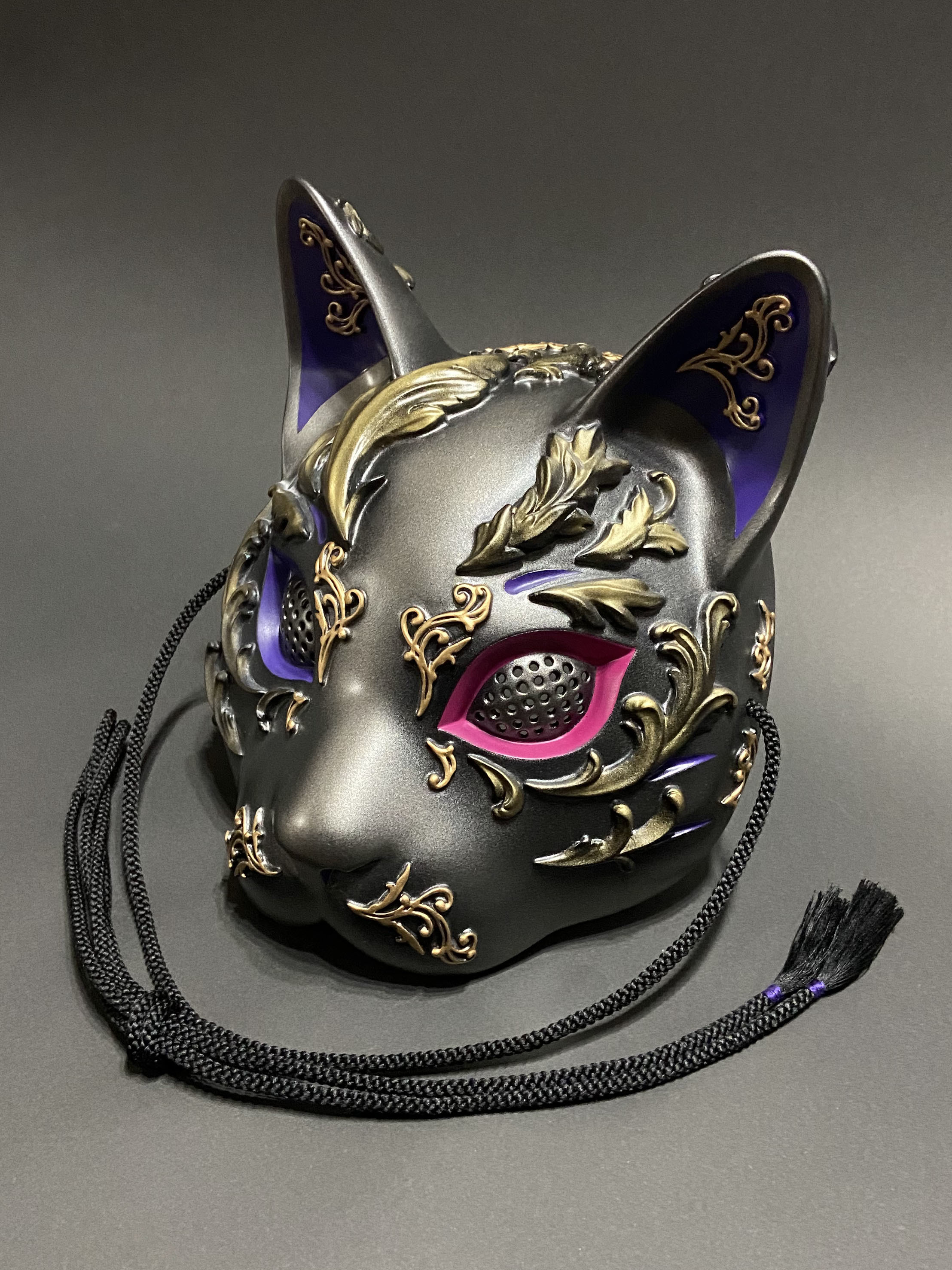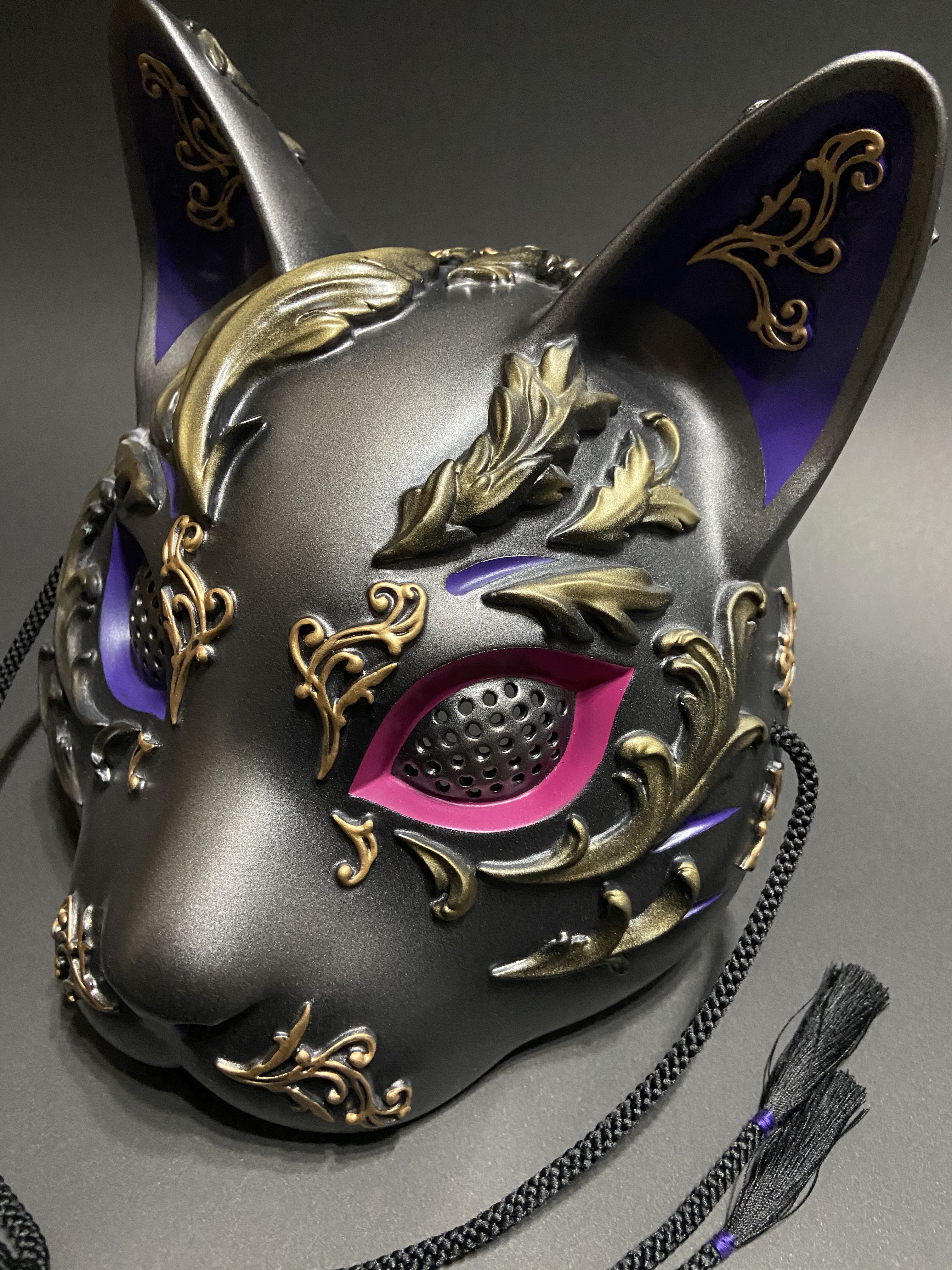 こちらの猫面には、ゴシック建築やギリシャ彫刻における代表的なモチーフである『アカンサス』の葉を、面全体にレリーフで装飾しております。