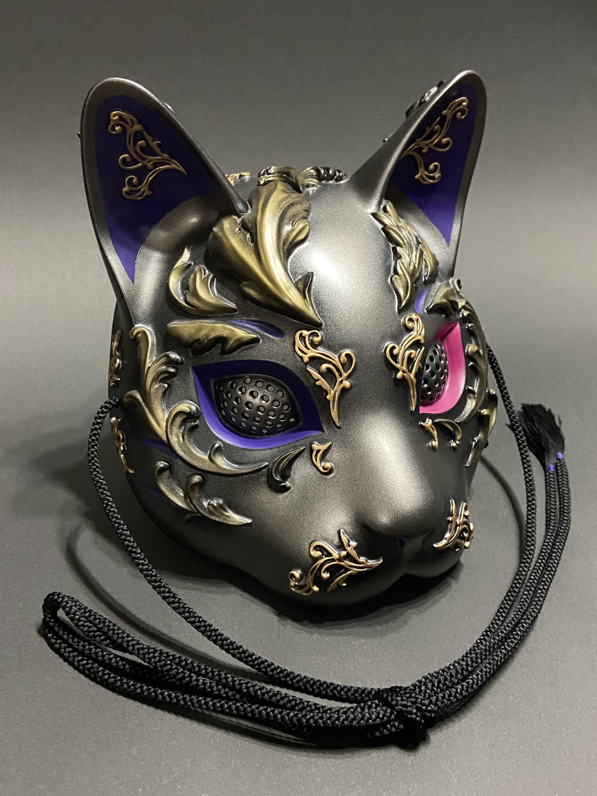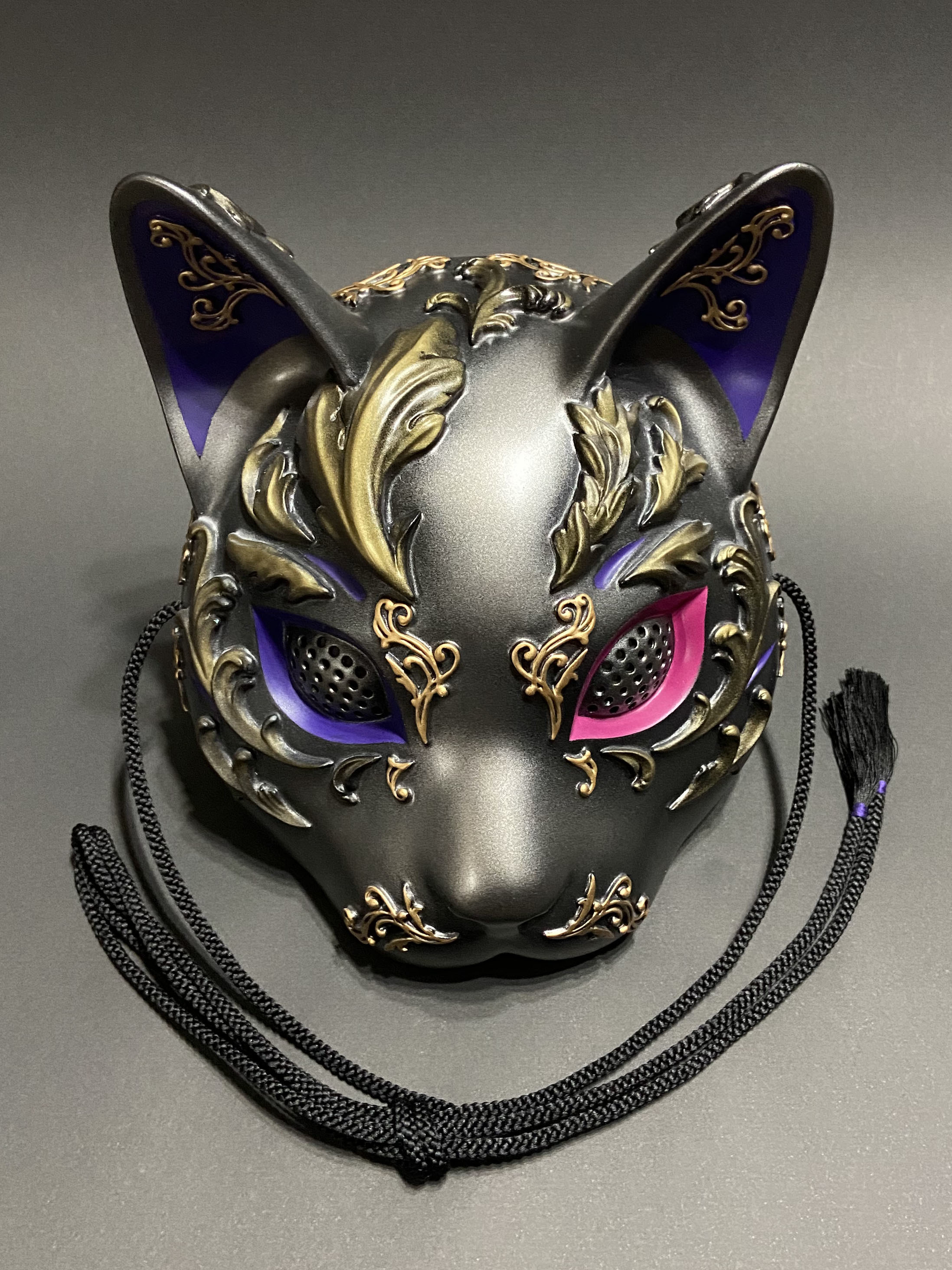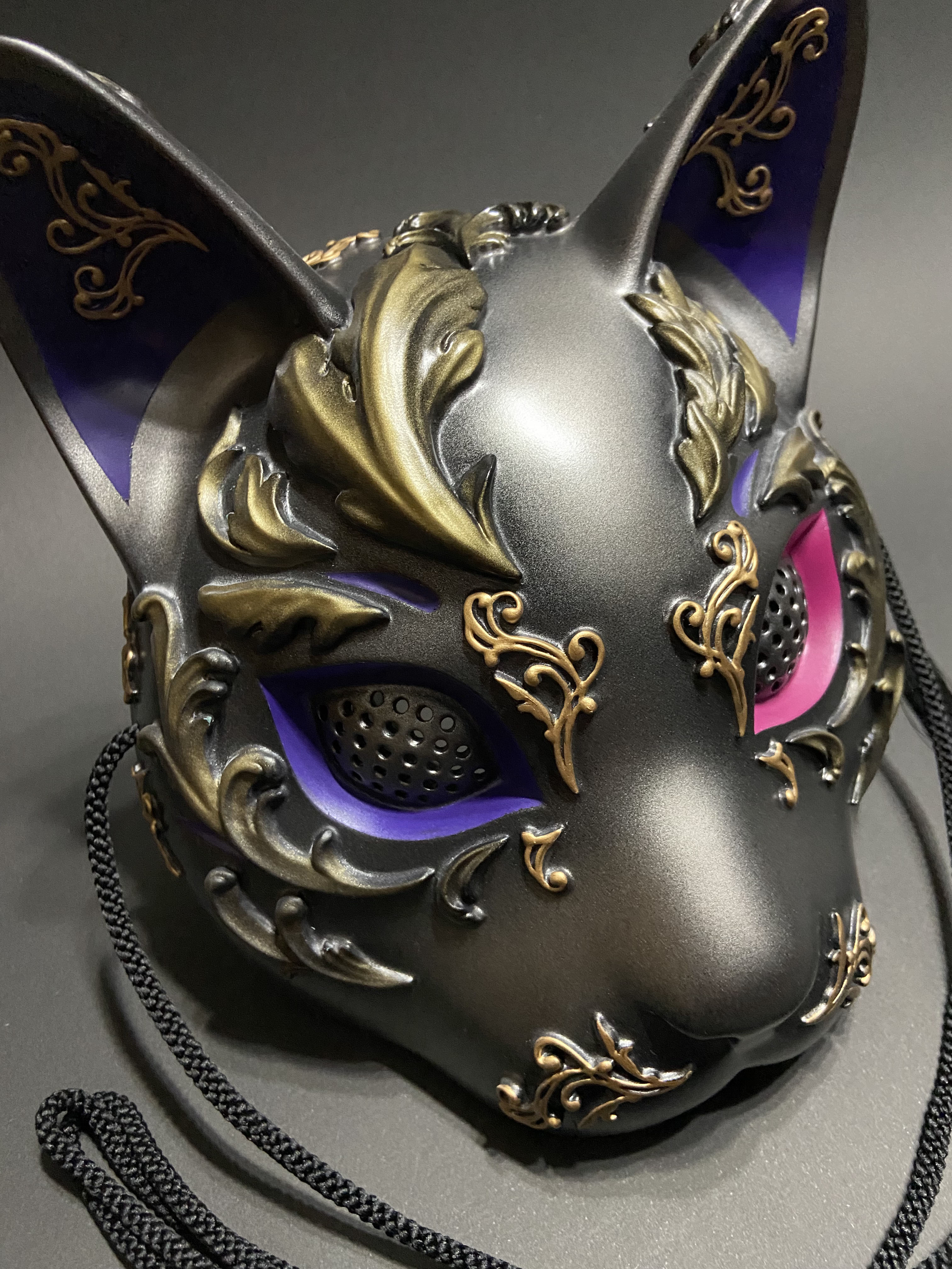 こちらの猫面には、ゴシック建築やギリシャ彫刻における代表的なモチーフである『アカンサス』の葉を、面全体にレリーフで装飾しております。