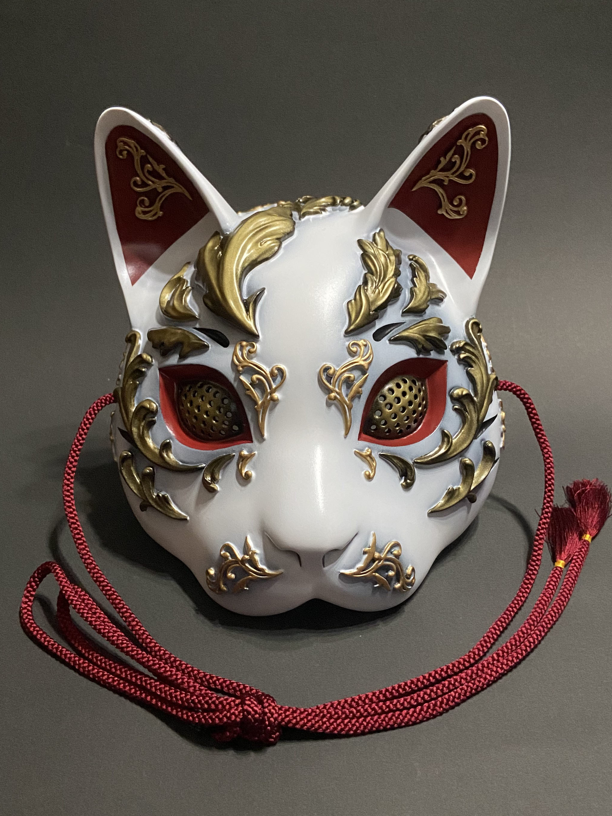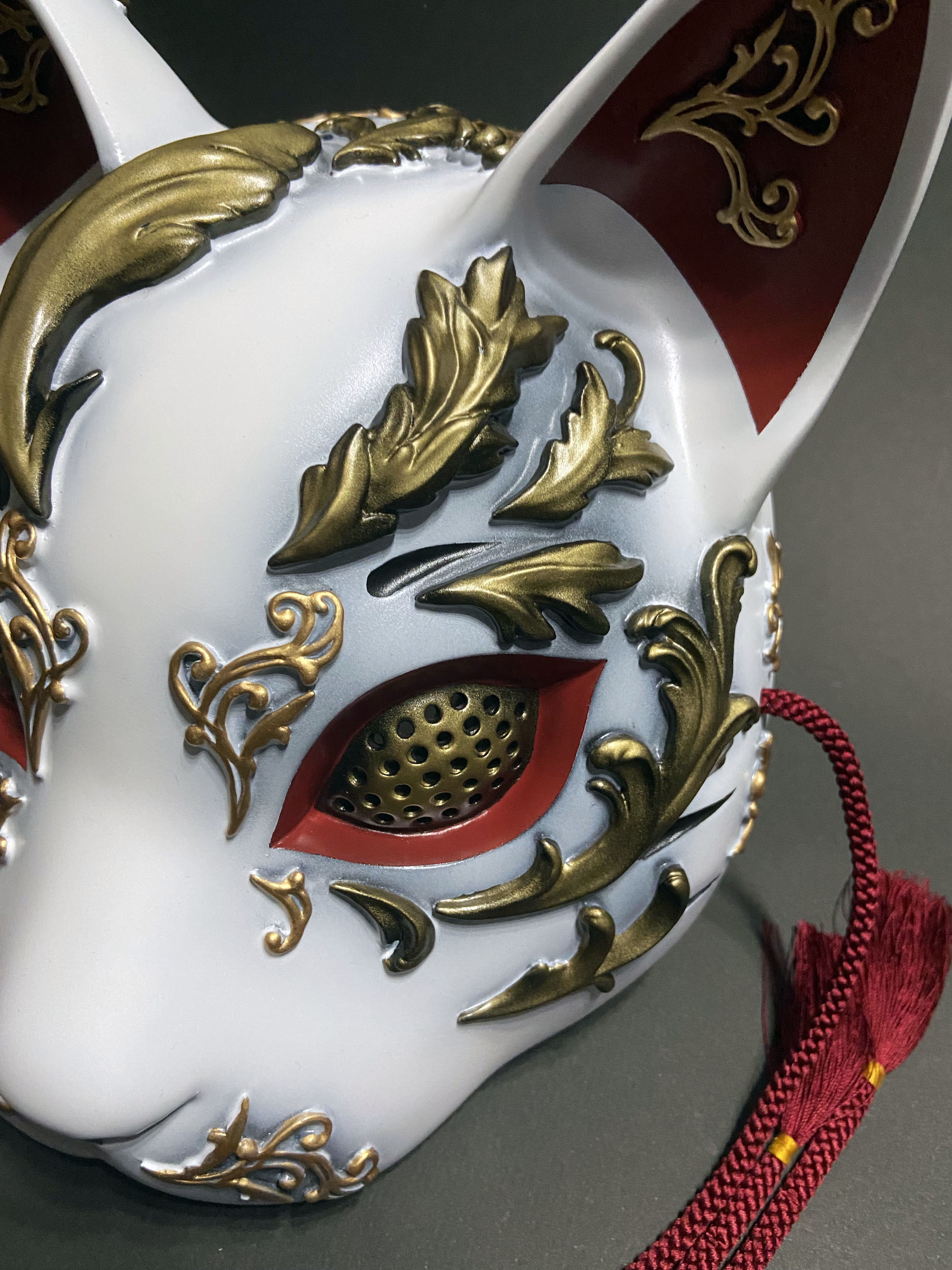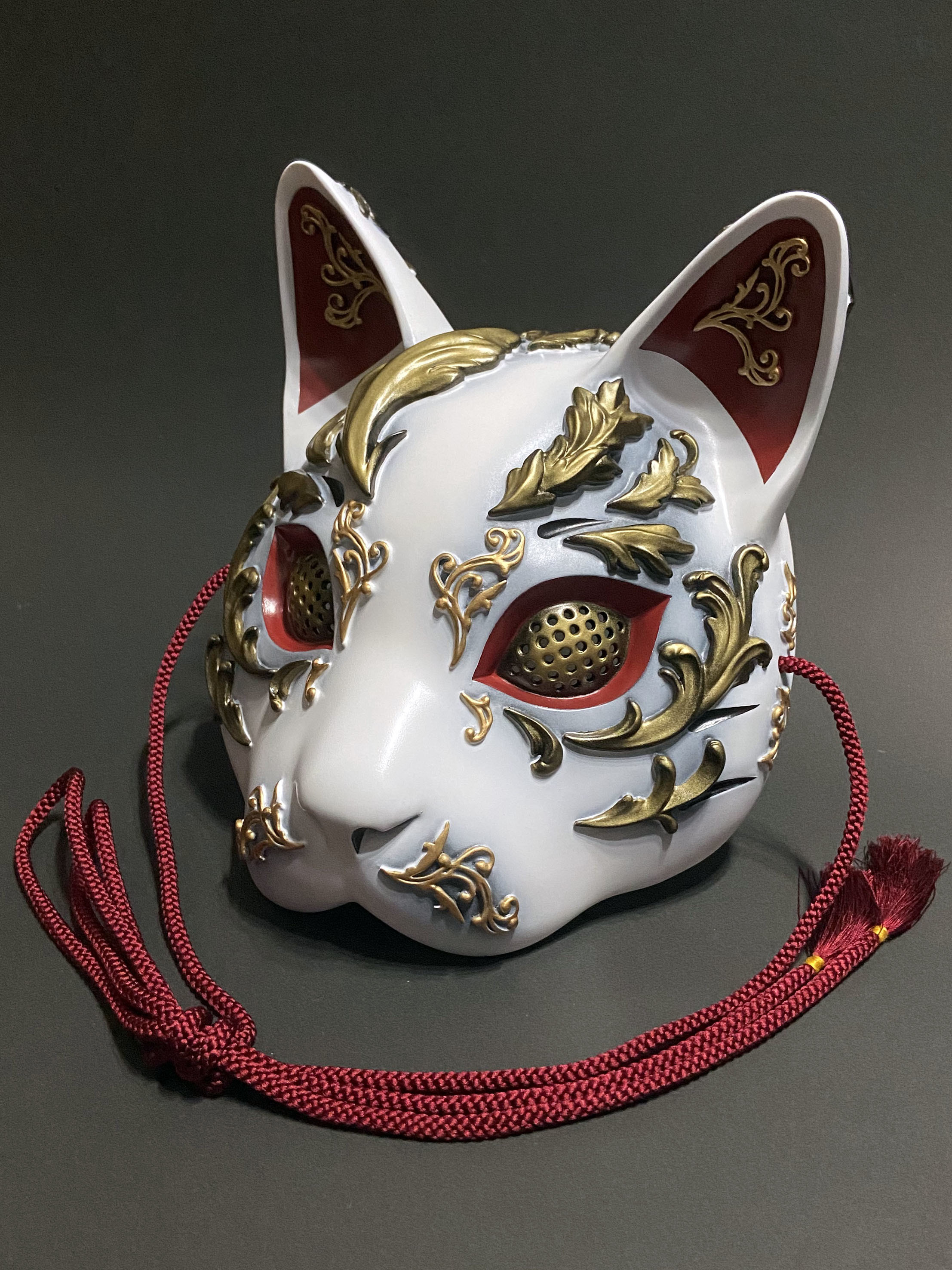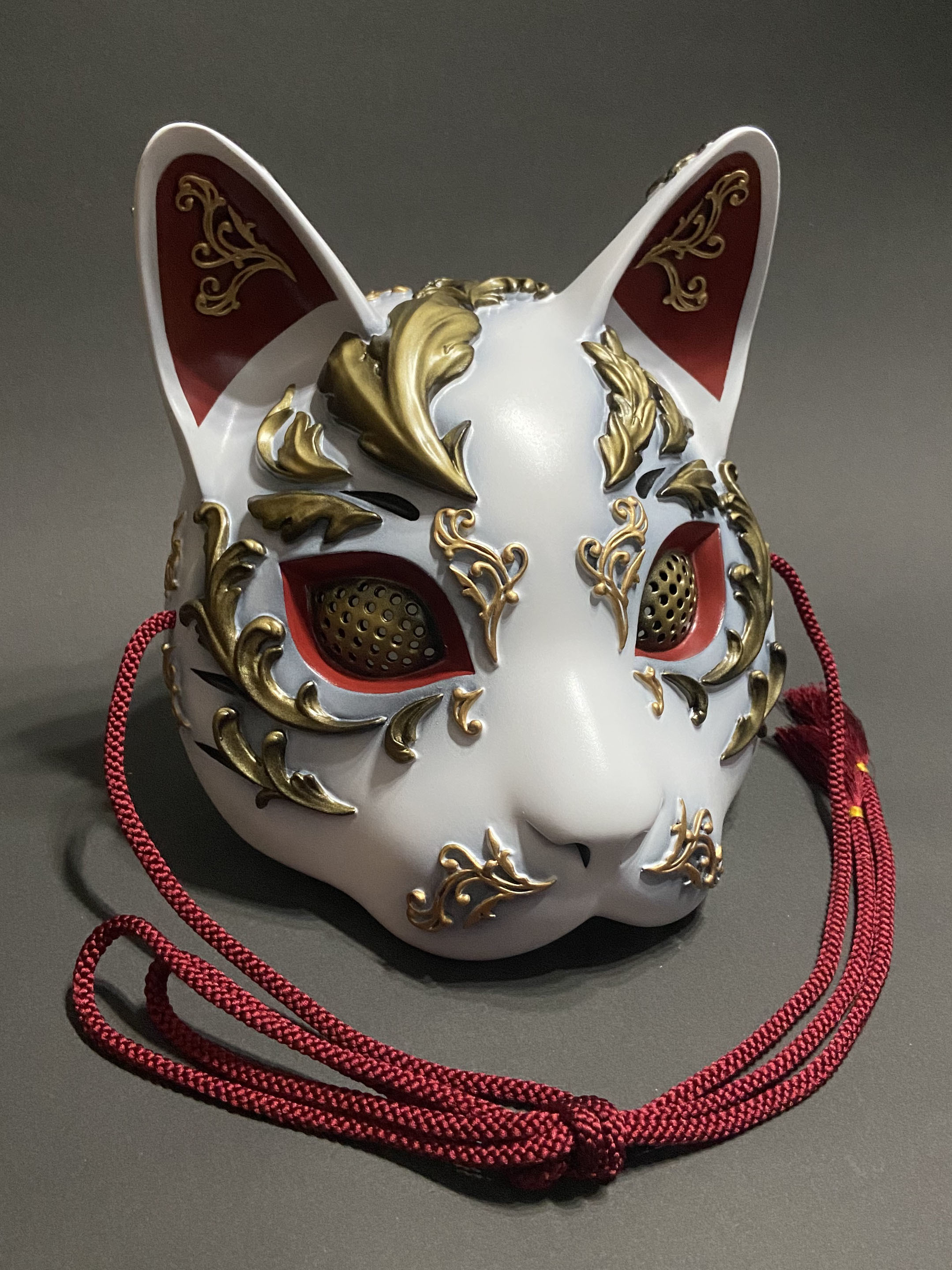 こちらの猫面には、ゴシック建築やギリシャ彫刻における代表的なモチーフである『アカンサス』の葉を、面全体にレリーフで装飾しております。