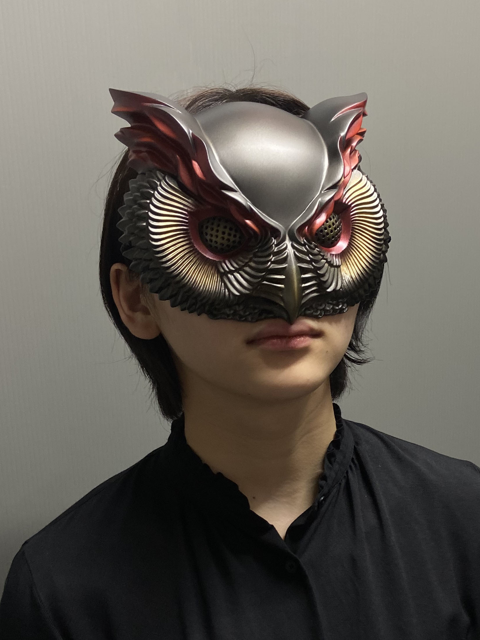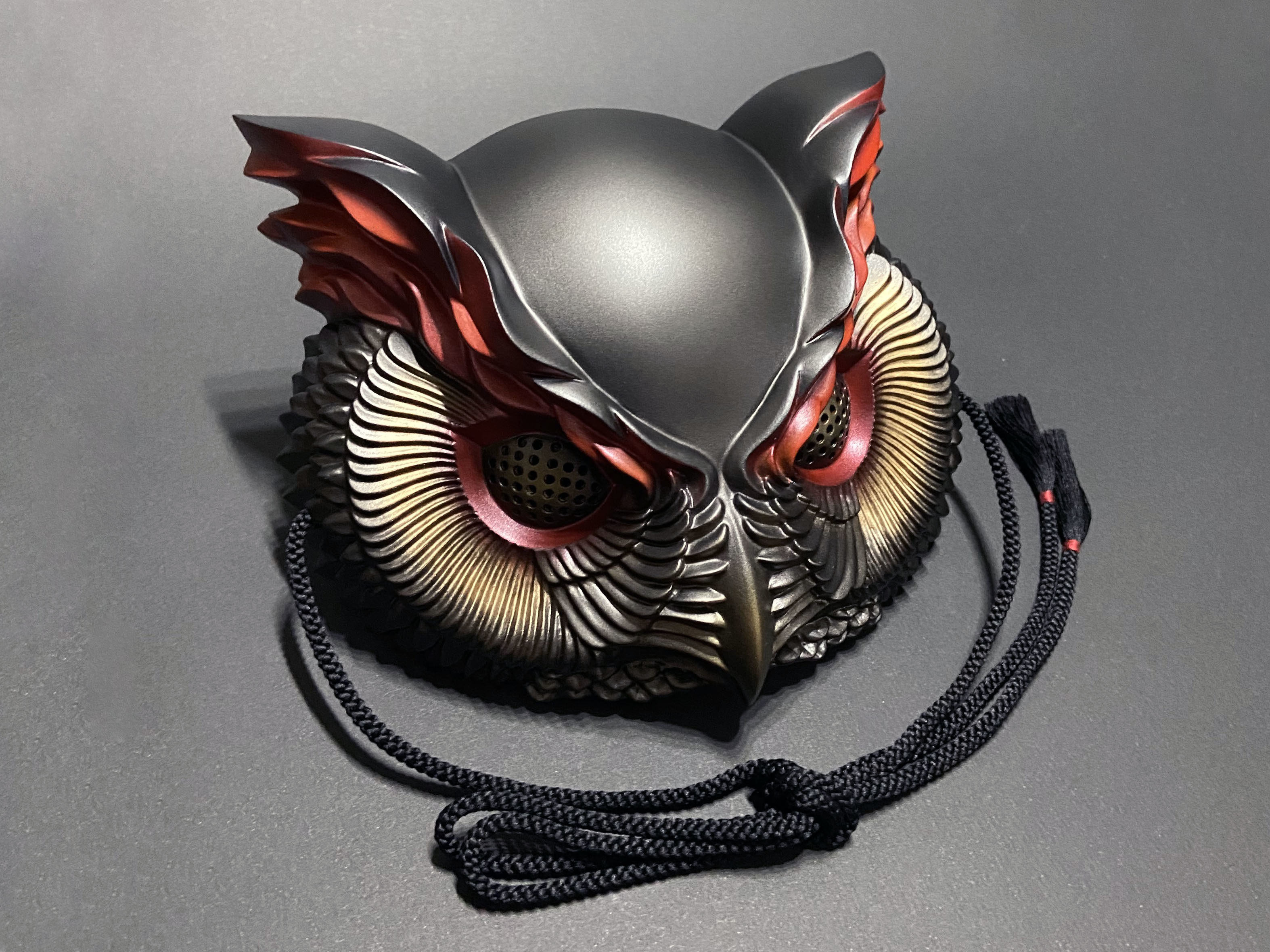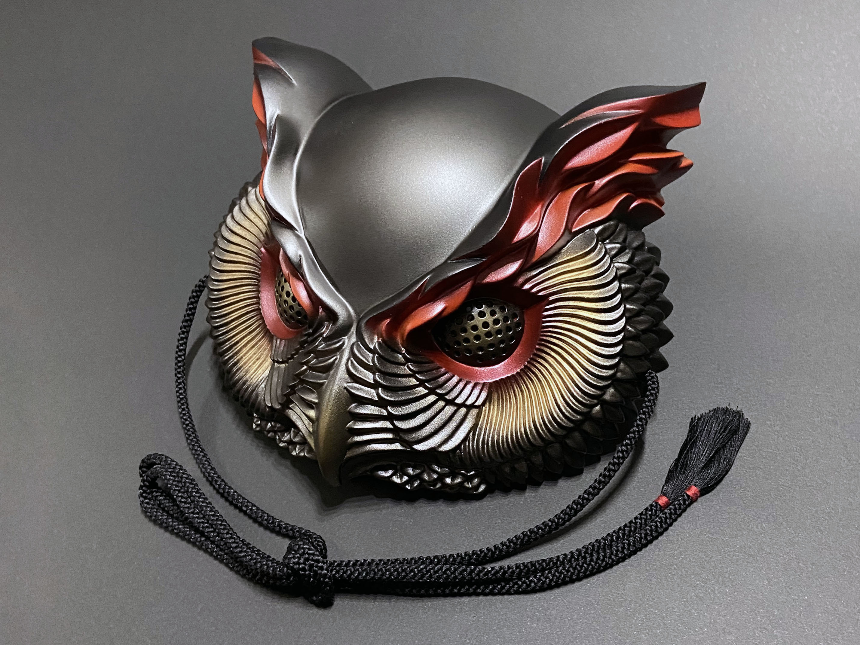 ミミズクの眼の上にある羽角(羽の束)を炎に見立てております。世に明るく火を灯す、また心に炎(情熱)を灯しているイメージです。