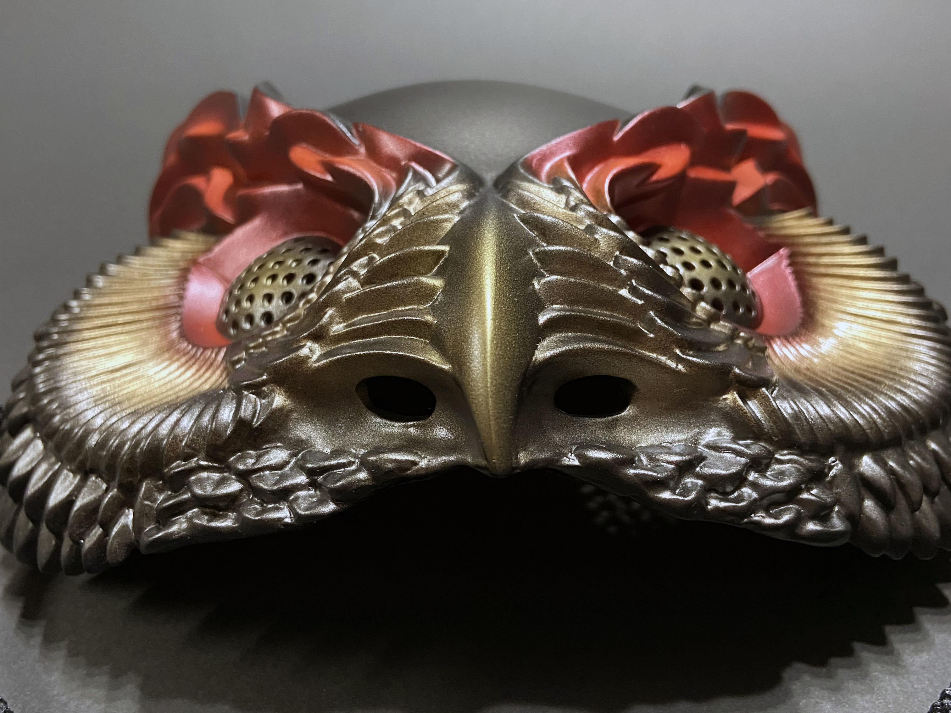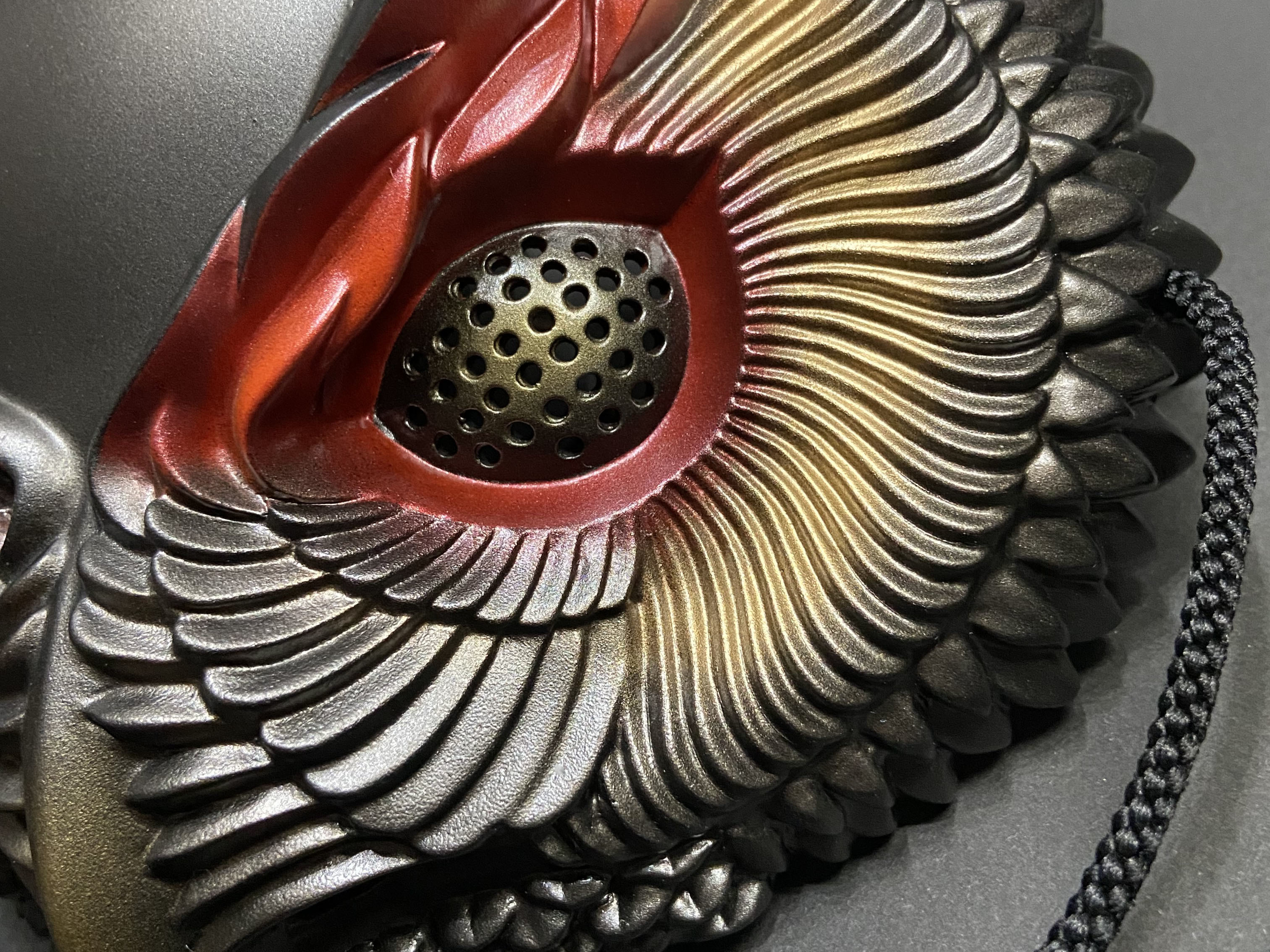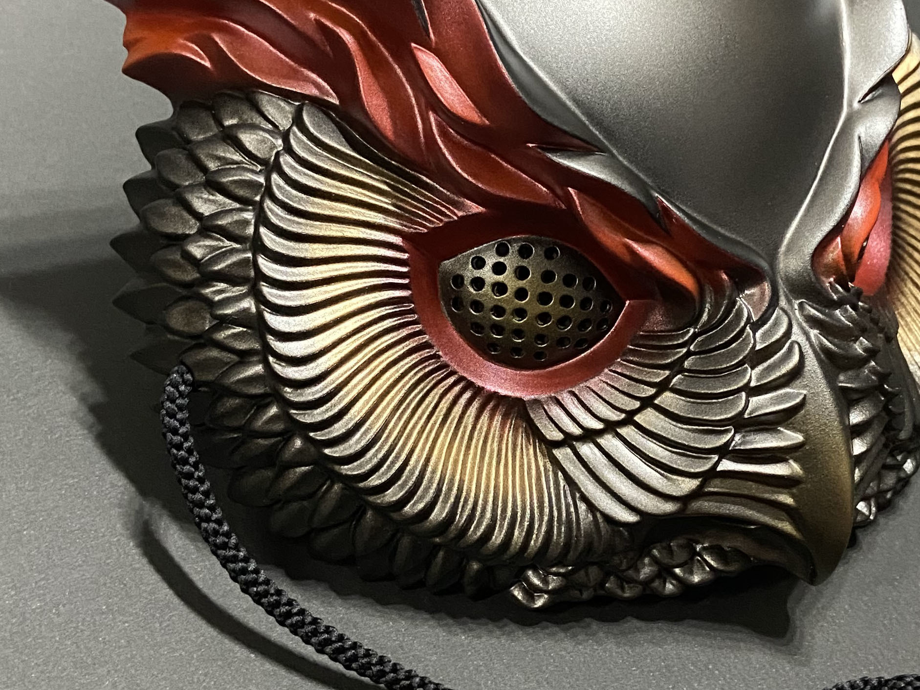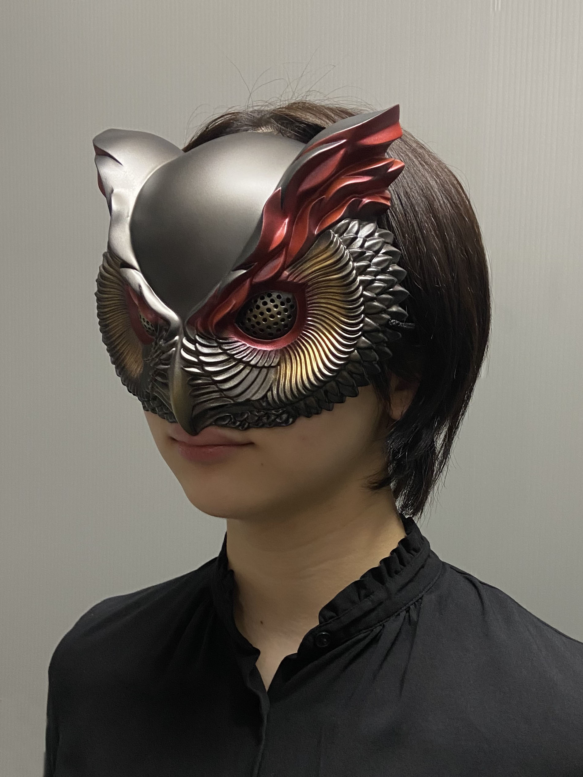 ミミズクの眼の上にある羽角(羽の束)を炎に見立てております。世に明るく火を灯す、また心に炎(情熱)を灯しているイメージです。