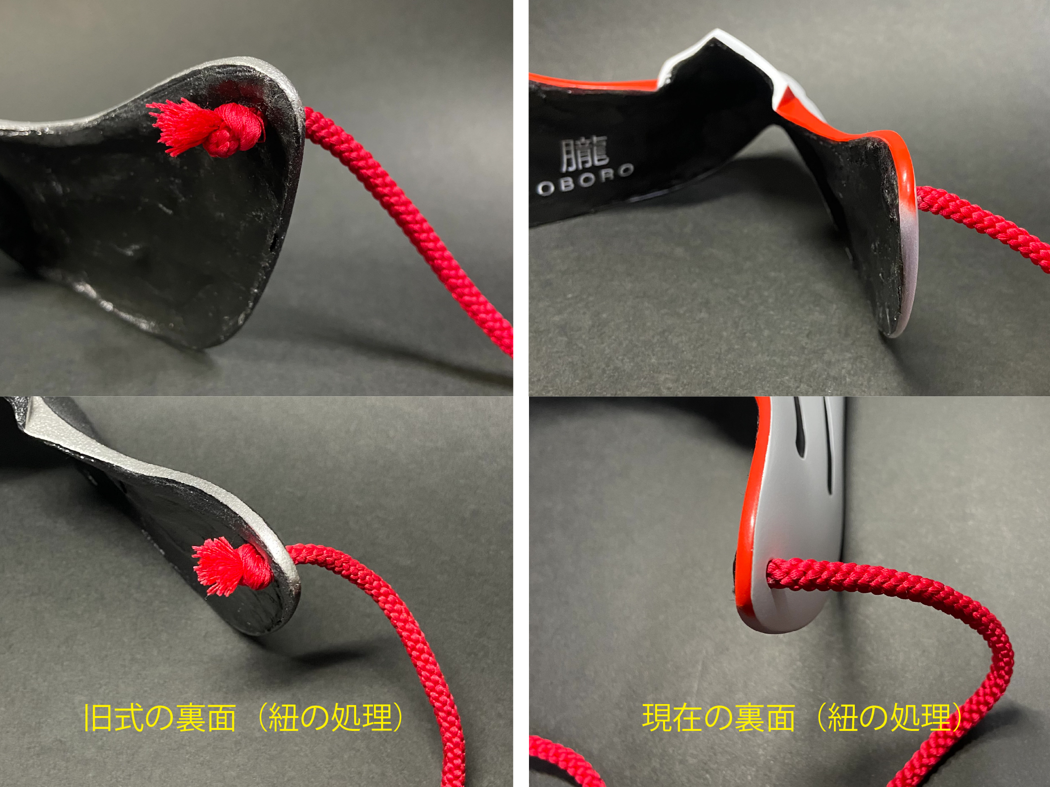 朧のマスクは現在すべての作品が、マスクに紐を接着(一体型)した状態となっております。