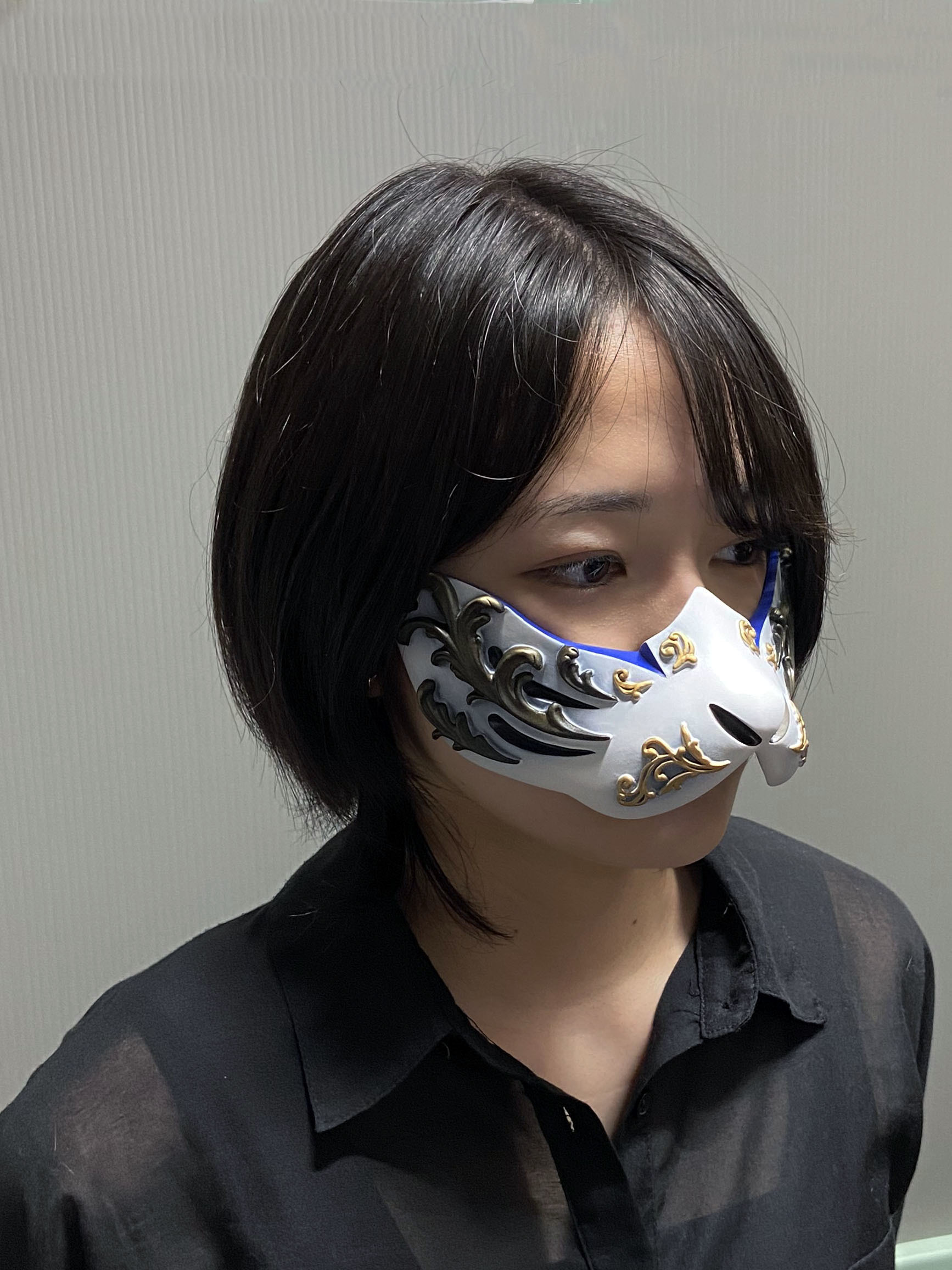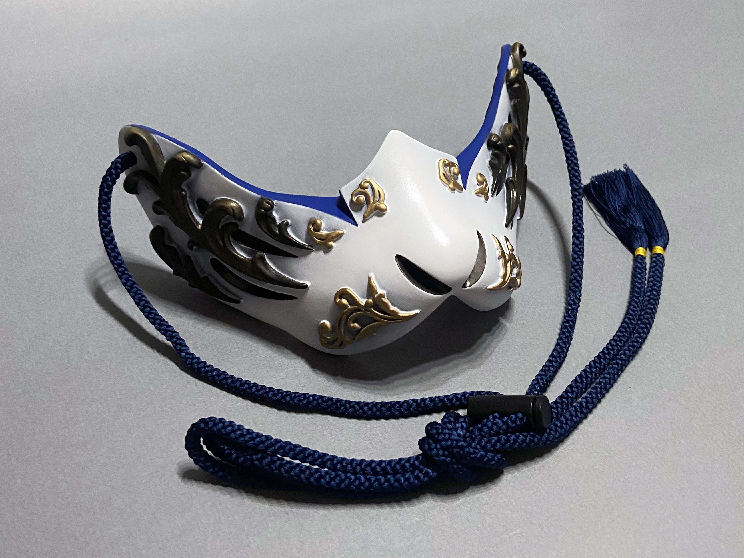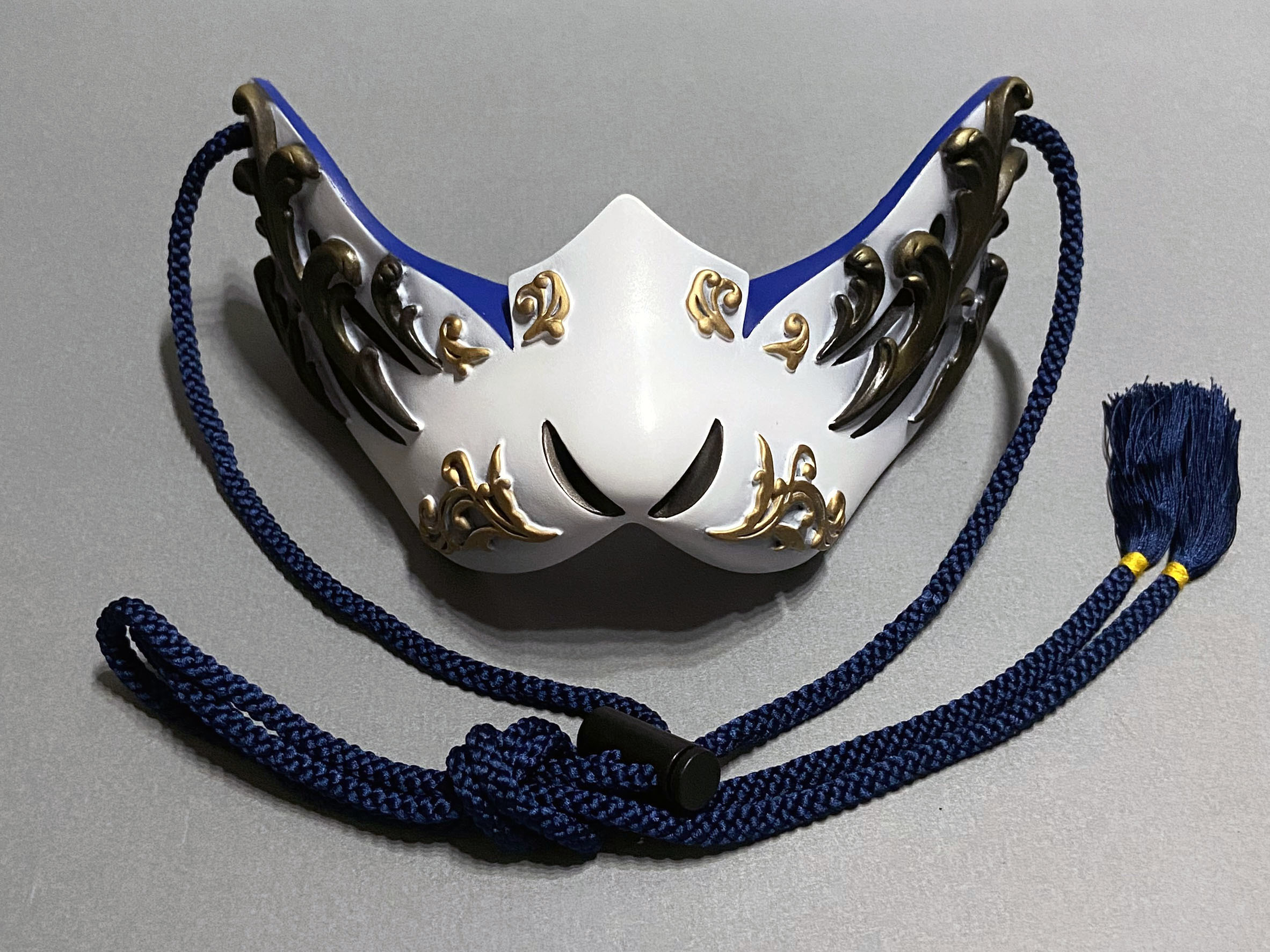 朧のマスクは現在すべての作品が、マスクに紐を接着(一体型)した状態となっております。